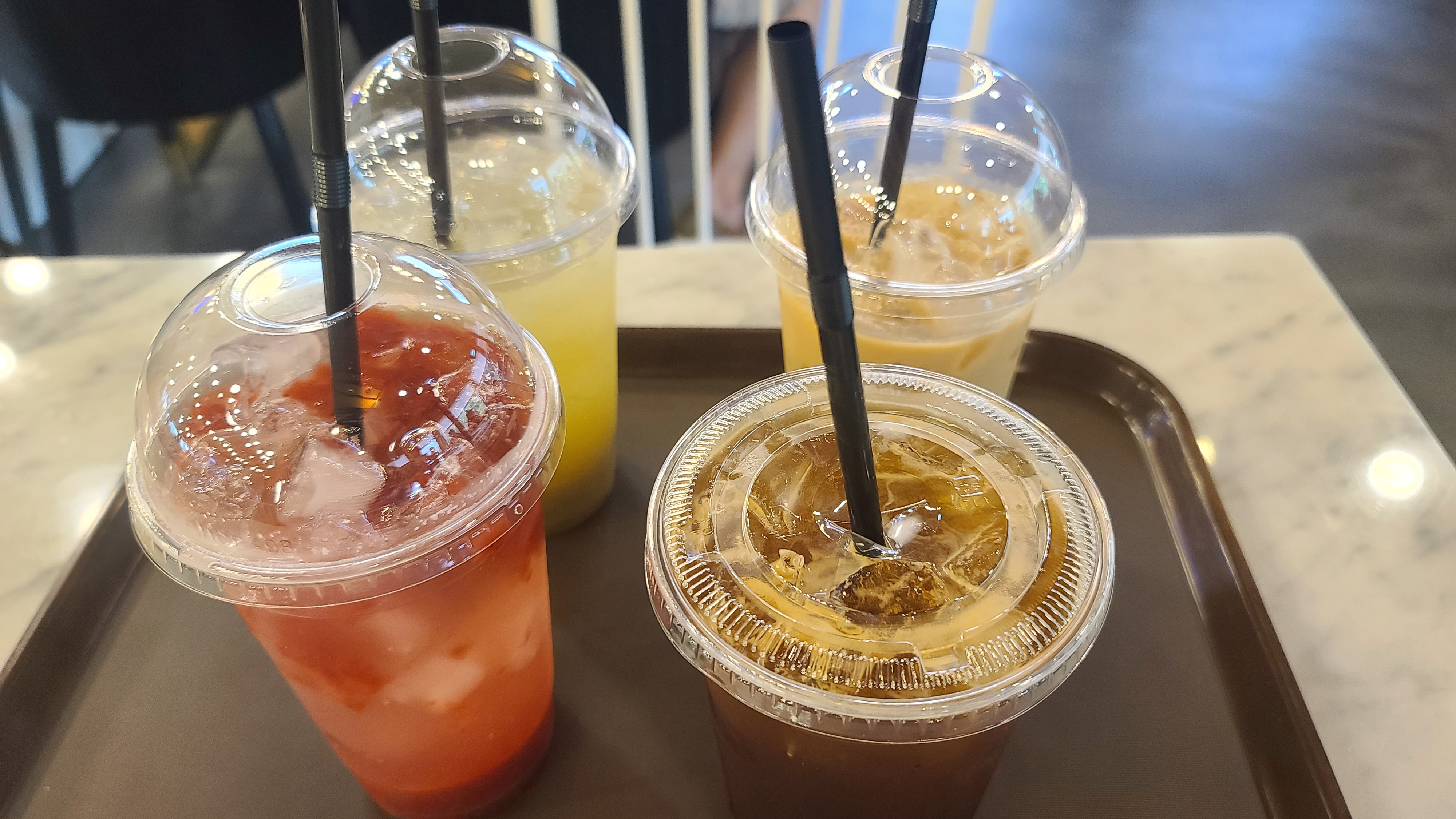 계산을 마치고 테이블을 잡은 후 골라온 맛있는 빵과 음료를 먹고 마셔봅니다. 여러가지 맛의 빵과 커피, 음료의 맛을 보니 간단하게 음료는 보통이고 커피는 맛이없고 빵은 보통인데 몇몇개는 상당히 맛있는 상태를 보여주고 있습니다. 크로와상이나 양파빵 등 일반적으로 볼 수 있는 빵들은 다른 베이커리와 비교해서 특별히 맛있다거나 가성비가 좋다는 느낌을 받기 힘들었으며, 소세지빵은 기대이하의 맛이었습니다. 블루베리 쉬폰케익은 겉에만 블루베리가 코팅되어 있어 상당히 실망했지만 맛은 상당히 좋게 느껴져 이것만큼은 경쟁력이 있는 것으로 보여졌습니다.