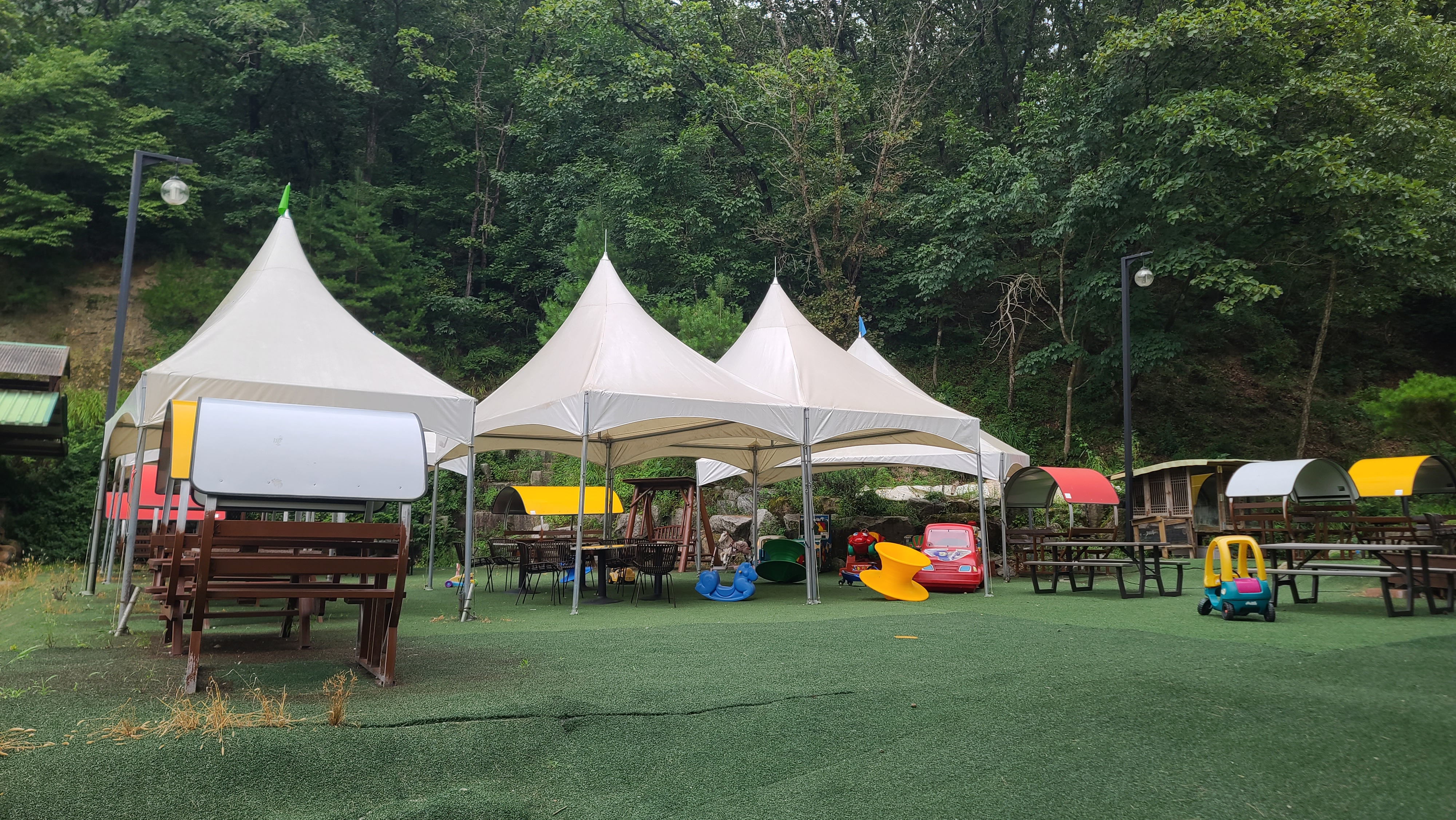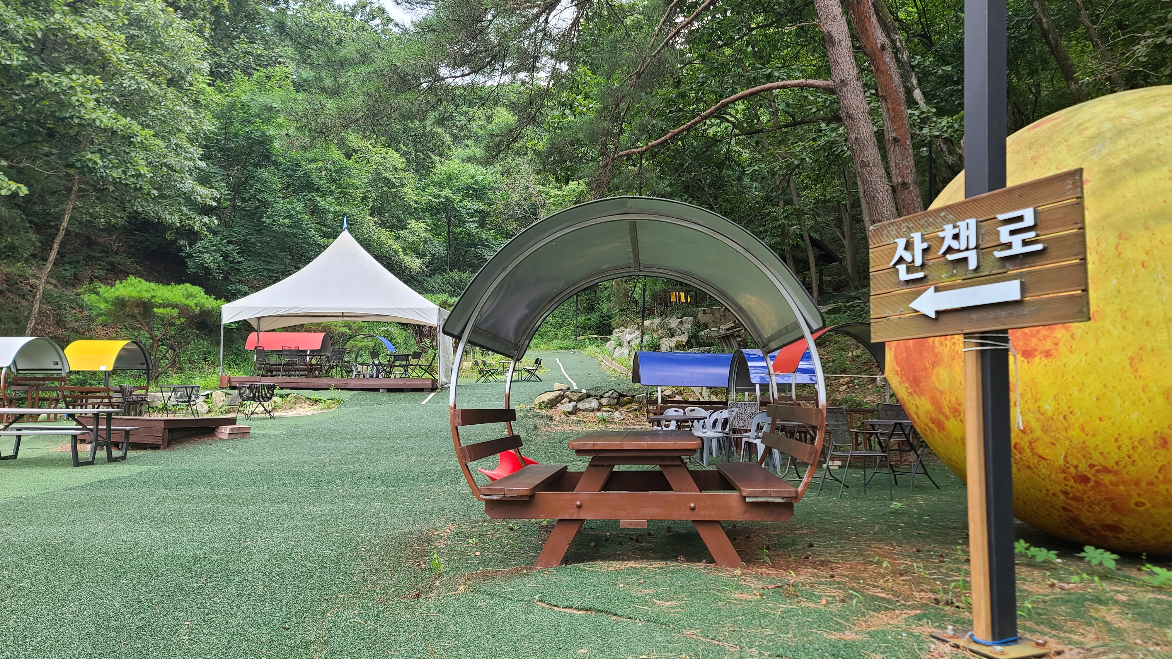 그럭저럭 빵과 음료를 맛보고 가게바깥으로 나가니 산책로와 여러가지 놀이기구가 조성되어 있어 아이들이 뛰어놀기 좋은 장소로 보여 기대치가 크지 않다면 상당히 즐길거리가 많고 추억을 남길 수 있는 곳이라는 생각이 들게 됩니다.