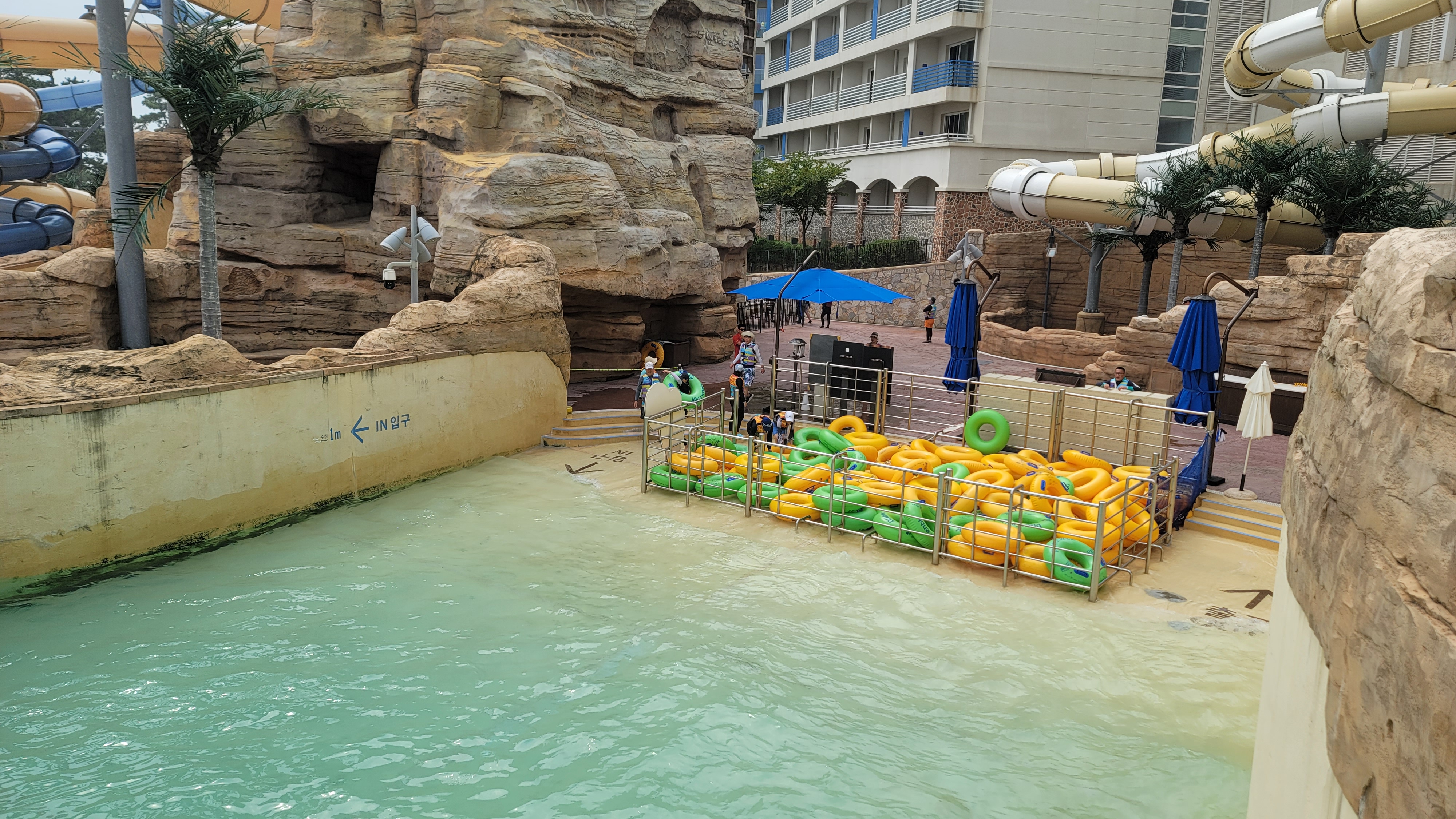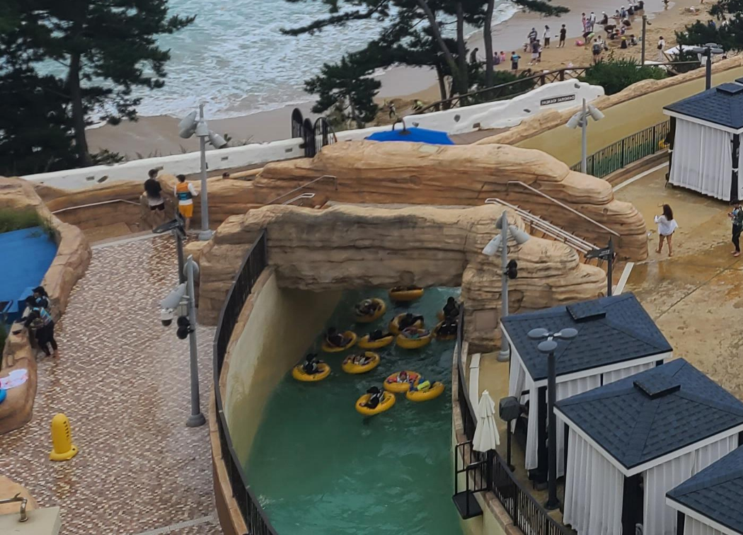 파도를 즐길 수 있는 유수풀 시설은 오션월드나 캐러비안 베이 처럼 길게 구성되어 있지는 않지만 높이가 매우 높고 파도가 쳐서 유아풀보다는 상당히 재미있게 즐길 수가 있는 것이 특징입니다. 오션월드와 같이 너무 익스트림하지도 않고 기존 유아풀보다는 조금 더 다이나믹한 중간단계의 시설로 쏠비치삼척에서는 기다리지 않고 가장 쉽게 즐길수 있는 물놀이 시설중 하나입니다.