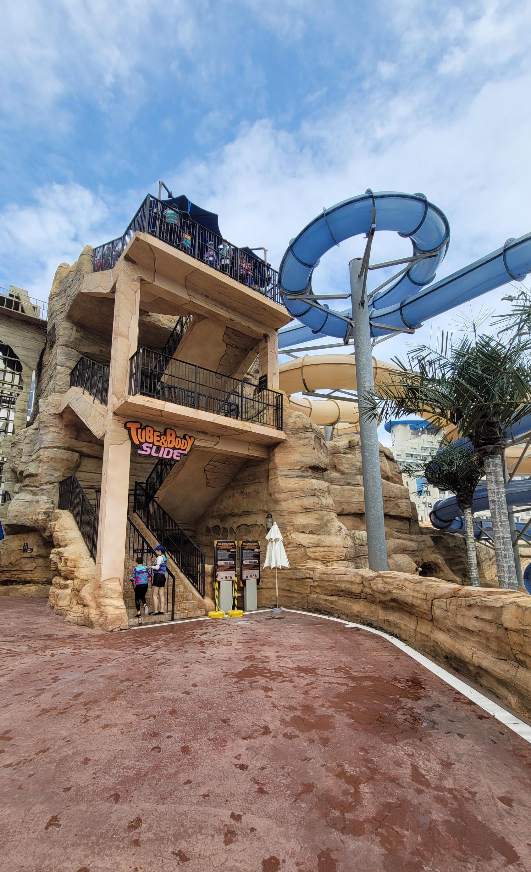 익스트림 수상놀이기구 중에는 튜브와 바디를 이용하여 수중 미끄럼을 즐길 수 있는 튜브&바디 슬라이드 시설이 있습니다. 비교적 높은 곳에서 360도로 트위스트를 그리며 미끌어지기 때문에 인기가 많고 아기자기안 오션플레이에서 가장 난이도가 높은 놀이기구로 아이들과 어른들도 인기가 많은 시설이기도 합니다.