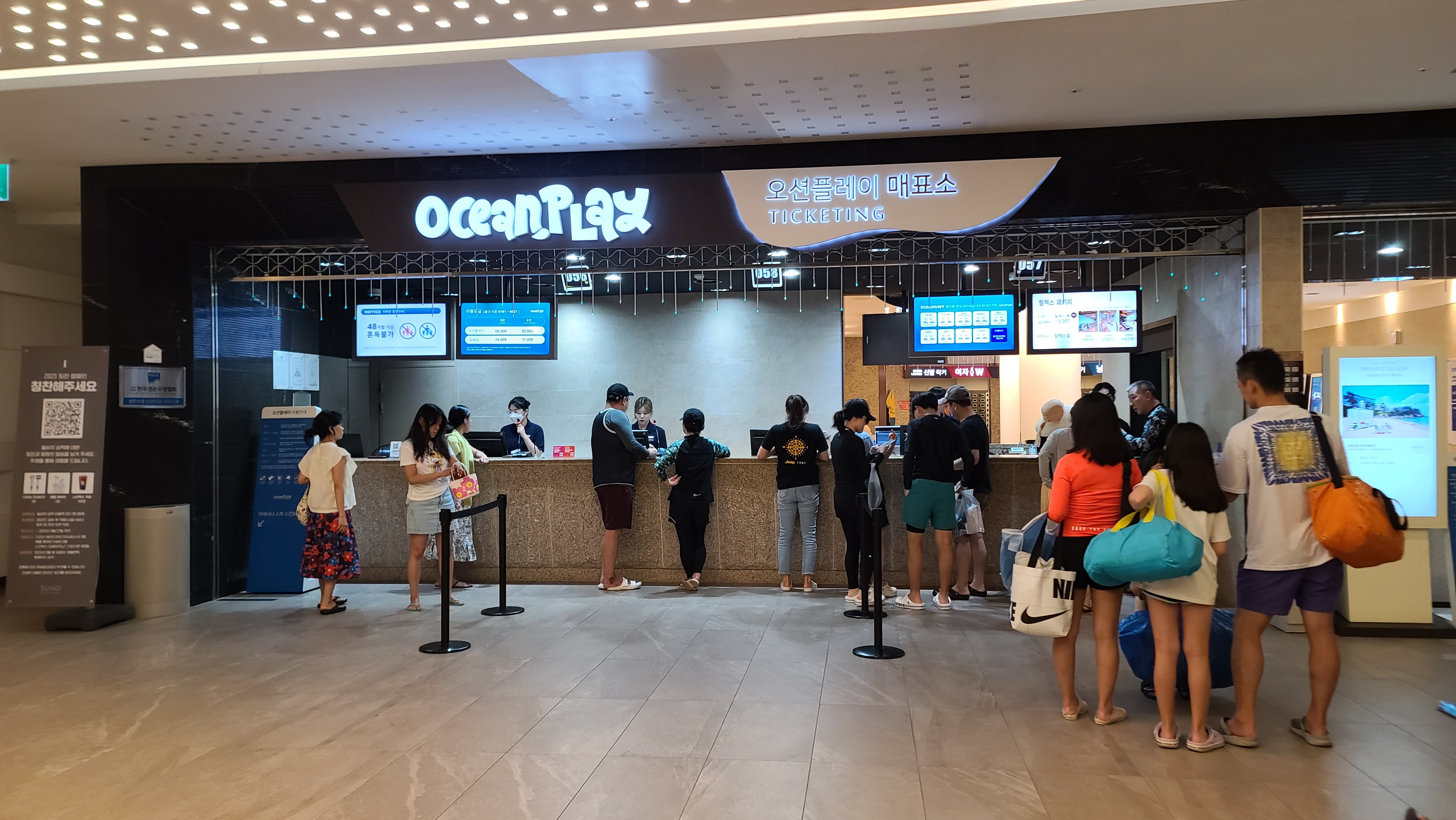 배가 고파서 먹을수밖에 없는 소비자의 심리를 잘 이용한 높은 가격책정이라고 생각하며 오션플레이의 입장료는 다른곳에 비해서 싸지만 부대시설 가격에서 본전이상을 뽑아먹는 높은 마케팅 전술에 놀라움을 금치 못하게 됩니다.