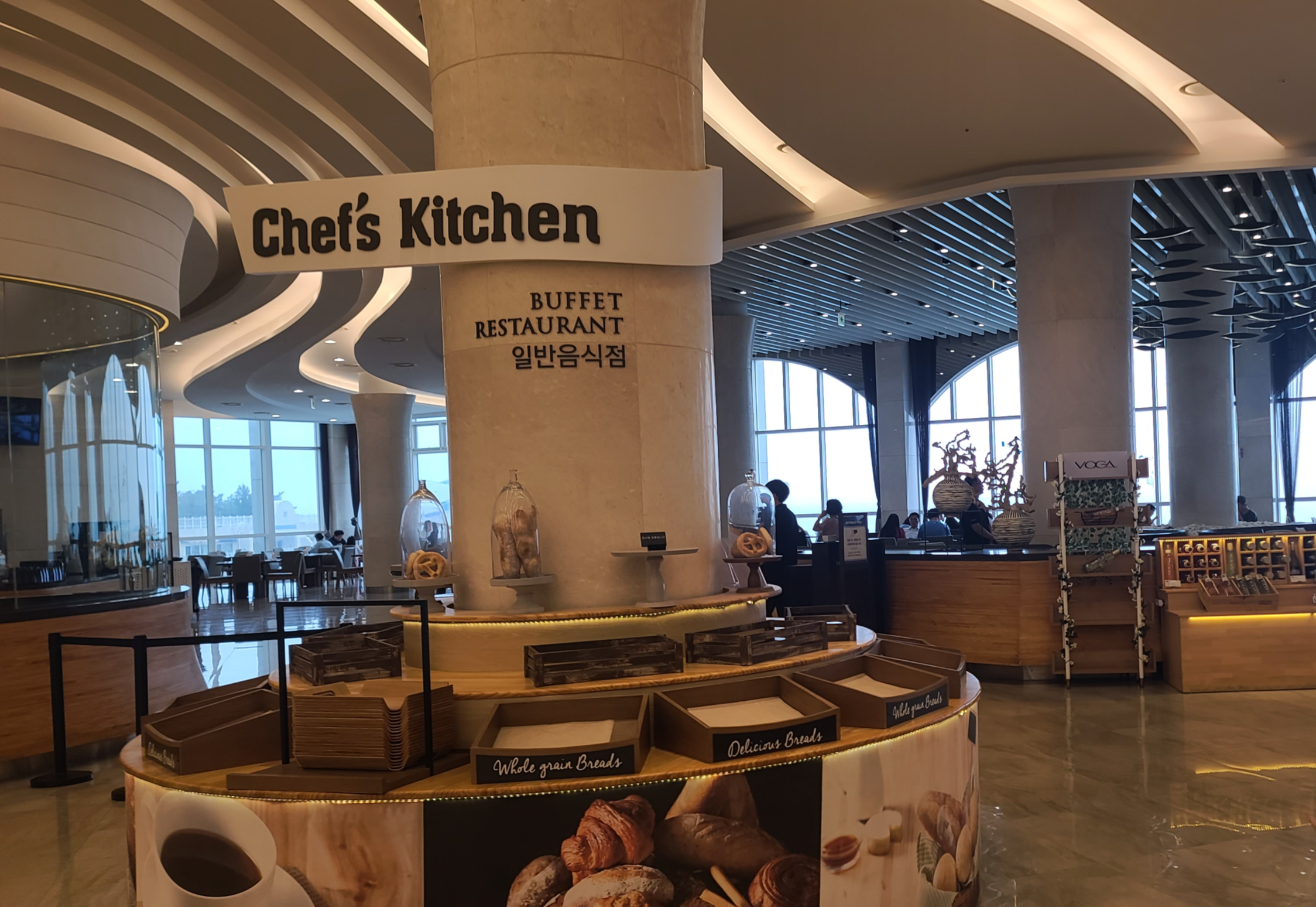 쏠비치 삼척에서의 여름휴가 아침식사로는 무엇을 먹을까 고민하다가 멀리나가지 않고 숙소에서 여유롭게 뷔페로 아침식사를 하기로 하고 1층에 위치한 셰프스키친으로 향합니다. 보통은 전날에 예약을 하는 것이 일반적이지만 당일 아침에 가도 상황에 따라 식사를 바로 하거나 웨이팅을 해서 앉을 수가 있는 시스템입니다.