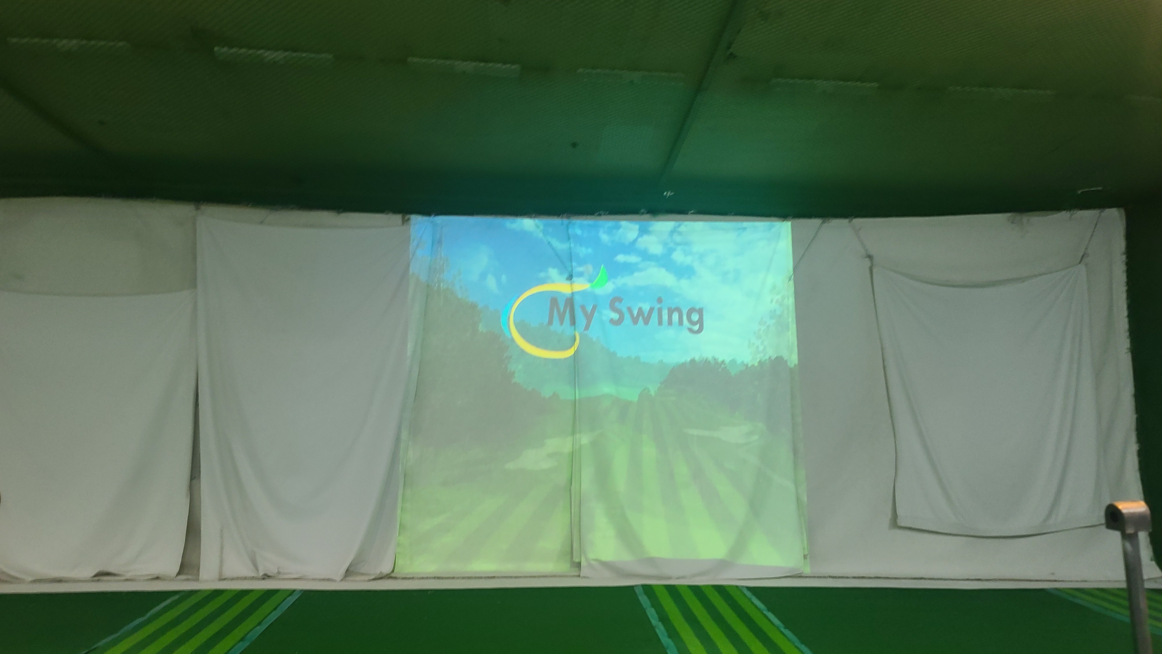 자리를 잡고 연습을 하려니 부팅화면이 마이스윙 (My Swing)이라고 쓰여있는게 골프존 GDR도 아닌 카카오 프렌즈 스크린도 아닌 새로운 골프 연습 시스템인 것이 보입니다. 마이스윙이 무엇인지 궁금해져서 부팅이 되는 동안 검색을 해보기로 합니다.