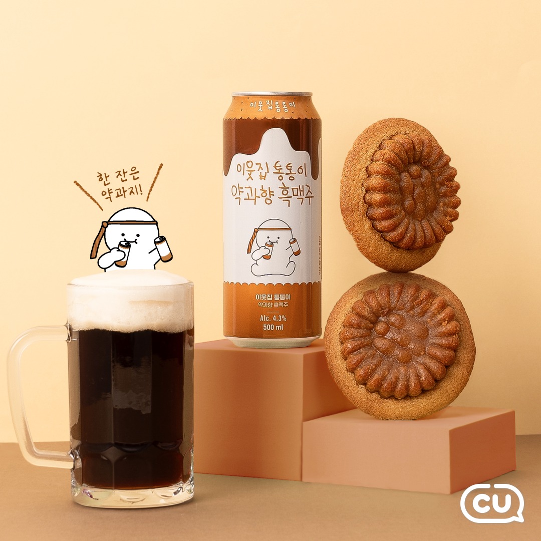 이웃집 통통이 약과 쿠키의 성공에 힘을 입어 출시한 최초의 약과맛 맥주 편의점 CU에서 만나볼 수 있으며 과연 약과의 맛과향이 녹아든 흑맥주제품을 시장에서 어떻게 받아들일지 또한 소비자들은 어떠한 평가를 내릴지 매우 기대가 되는 제품으로 행보를 지켜보는 것도 주류에 관심있는 사람이라면 흥미로운 제품이 될 것이라고 생각합니다.
