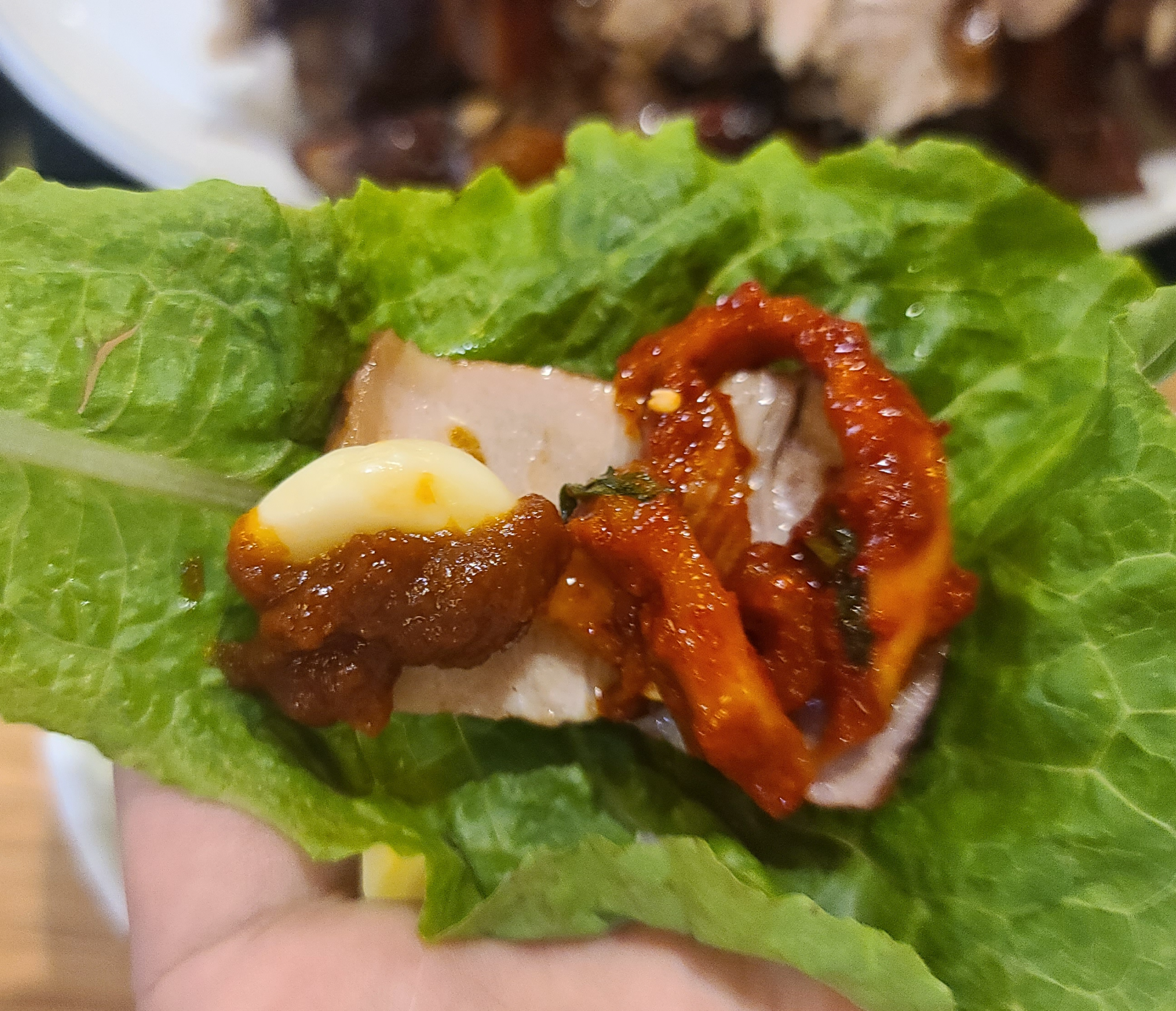 뒤를이어 보쌈도 연달아서 족발과 같이 다양한 방식으로 맛을보고 평가를 해봅니다. 역시 평범한 보쌈의 맛과 상태로 적당히 쫀득하고 적당히 간도 있고 보쌈김치도 적당히 조미료 맛도 나고 모든것이 평범한 맛과 향을 보여주고 있습니다.