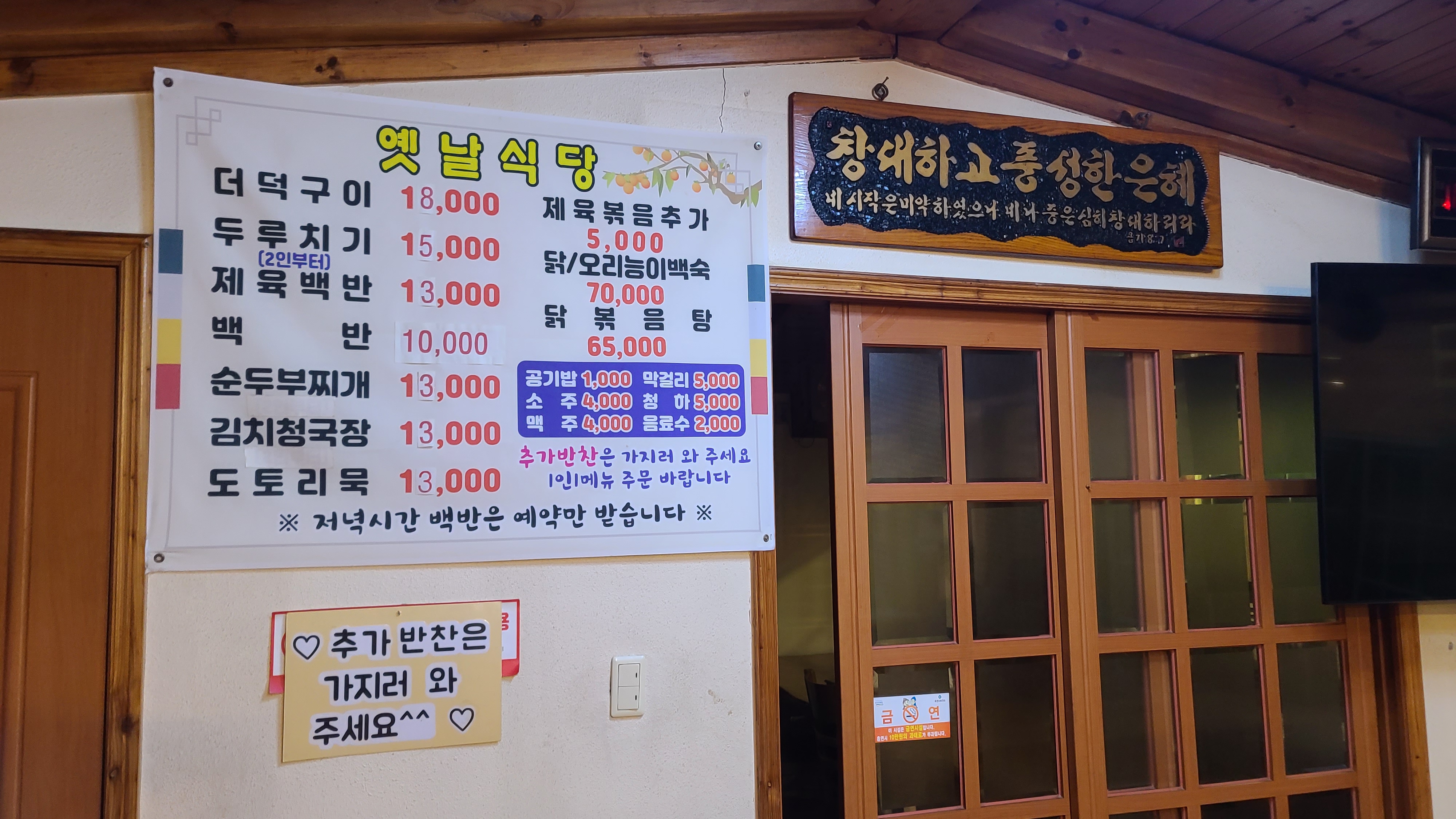 라싸CC에서 라운딩을 마치고 체력을 소진하여 허기가 지고 기력보충이 필요하다고 생각되어 근처에 맛집을 찾아보다가 라운딩을 하러 올라가다 사람들이 많고 전통가옥처럼 생겨서 기억에 남는 맛집을 더듬고 더듬어서 다시 찾아가봅니다. 가게앞에 도착하니 가게명이 옛날식당 이라는 것을 알게되며 참으로 분위기와 어울린다는 생각을 하게 됩니다.