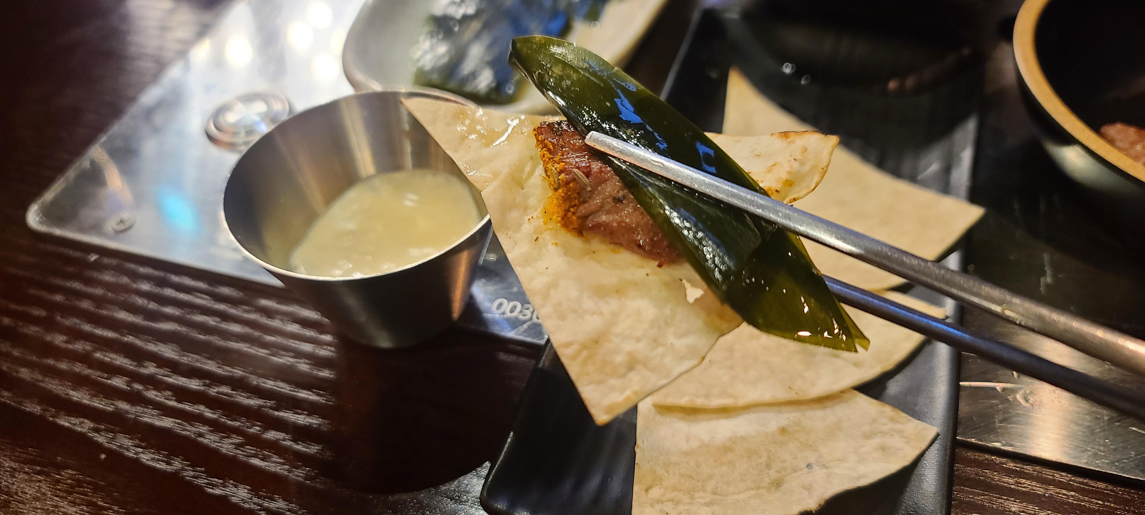 양등심을 와인과 음미하며 즐겨보고 뒤를이어 프렌치렉도 타코 스타일로 야채와 곁들여서 싸먹어보고 뼈를들고 고기를 뜯어도 보고 다양한 방식으로 즐겨봅니다. 맛이 참좋고 분위기도 좋고 모두 좋으며 가격만 착하다면 얼마나 좋을까 하는 생각을 해보게 됩니다.