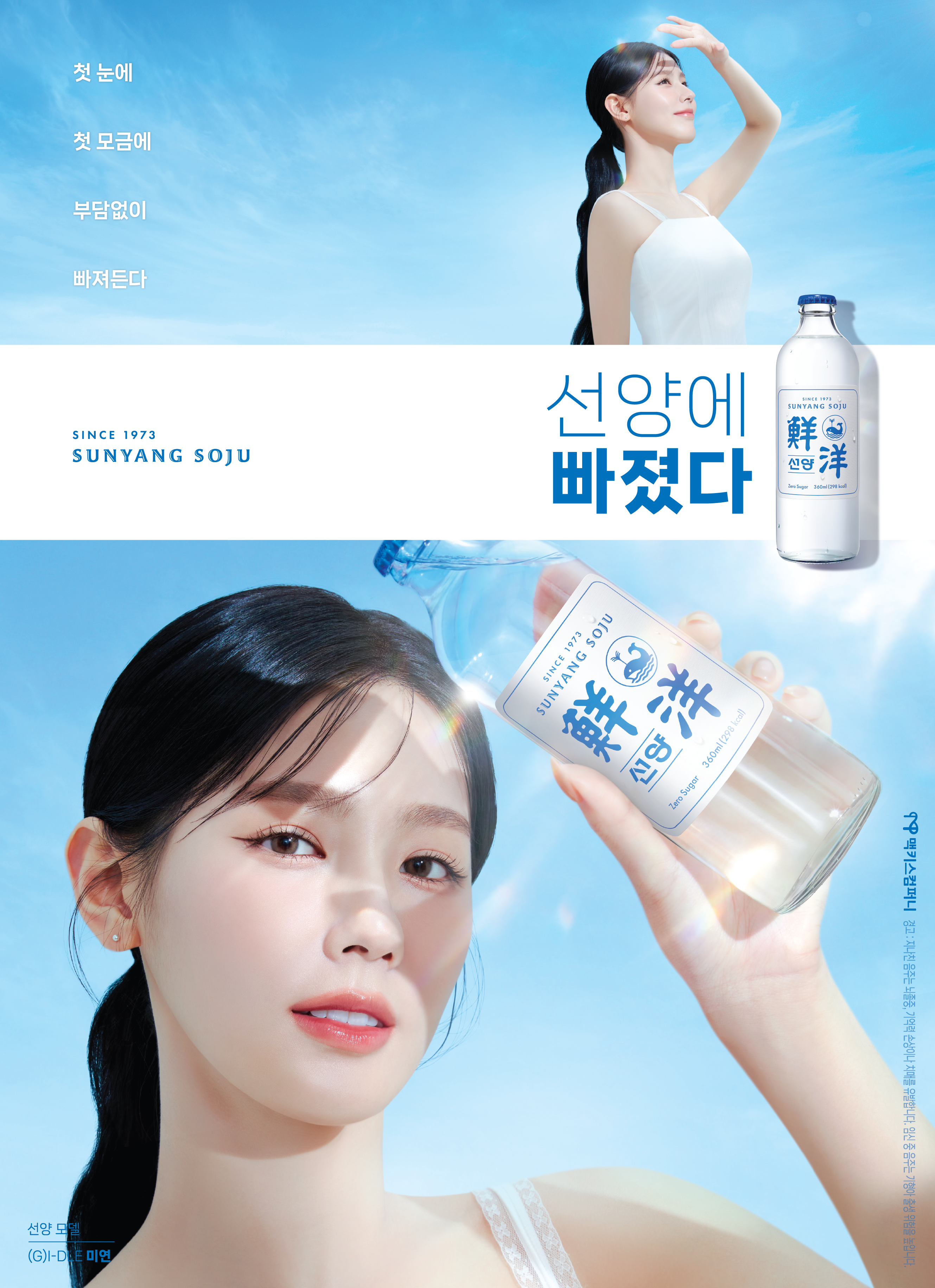 선양 소주제품은 아이들의 미연을 모델로 홍보하고 있으며 여자 아이돌의 깨끗하고 순수한 이미지를 제품에 투영하려는 시도를 하고 있는 것을 찾아 볼 수가 있습니다. 이는 다른 경쟁사 제품들이 아이유, 제니, 아린 등 여자 아이돌을 모델로 쓰는 이유와 일치하는 홍보방식으로 맥키스컴퍼니가 소주업계에서는 기존과 다르게 파격적인 모델 기용 및 마케팅 방법을 사용하였지만 신제품 선양소주를 출시하면서 요즘 트렌드라고 불리우는 저도수, 무첨가, 여자모델 등의 요소를 적용시키고 있다고 볼 수가 있는 것입니다.