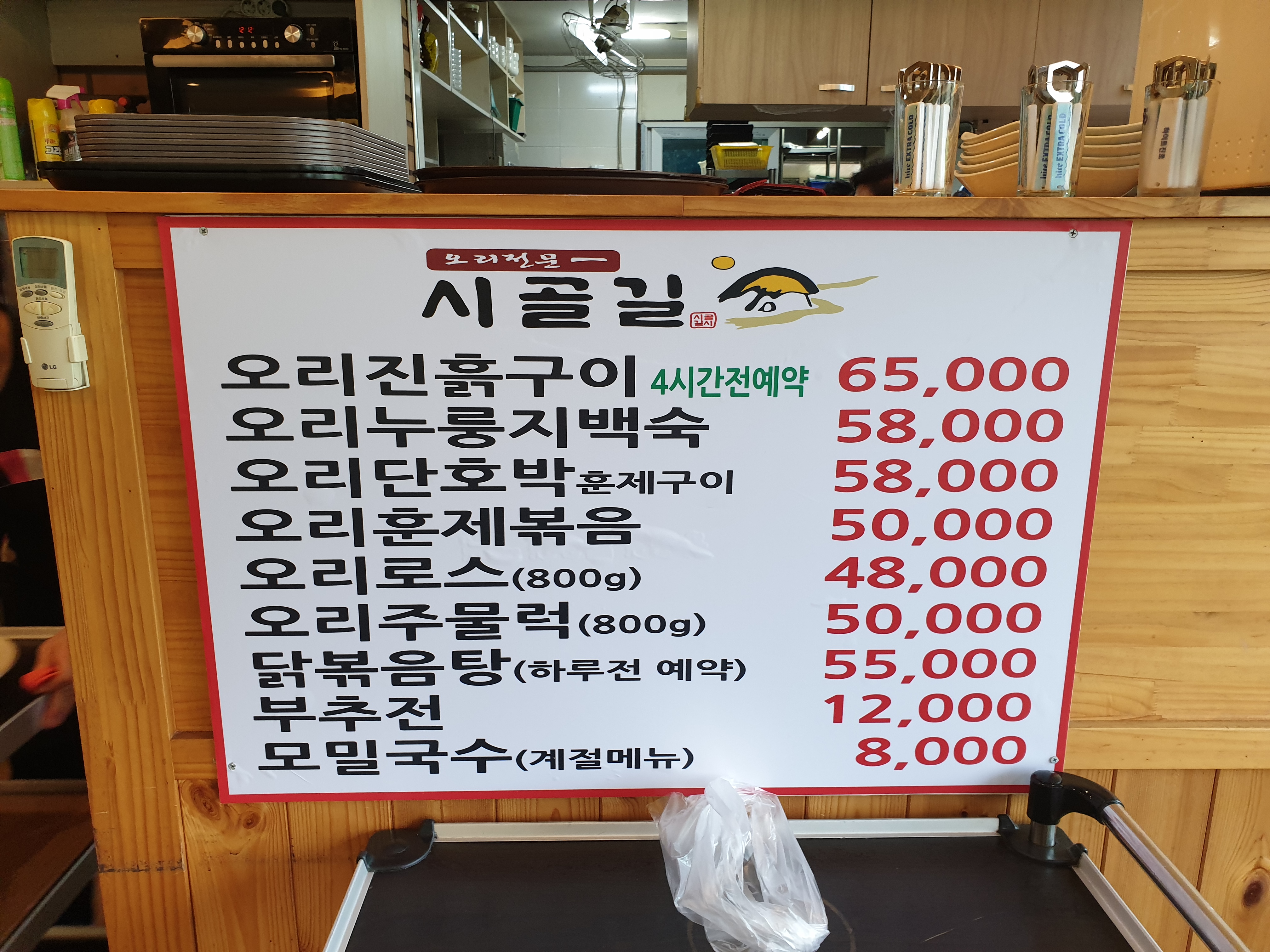 입장해서 메뉴를 잘살펴봅니다. 사실 저는 오리진흙구이를 이미 4시간전에 예약하고 왔지만 다른 메뉴들은 어떤게 있는지 보고싶었습니다. 지금보니 닭볶음탕은 하루전에 예약을 하라고 써있네요. 왜그런지 신기합니다.
