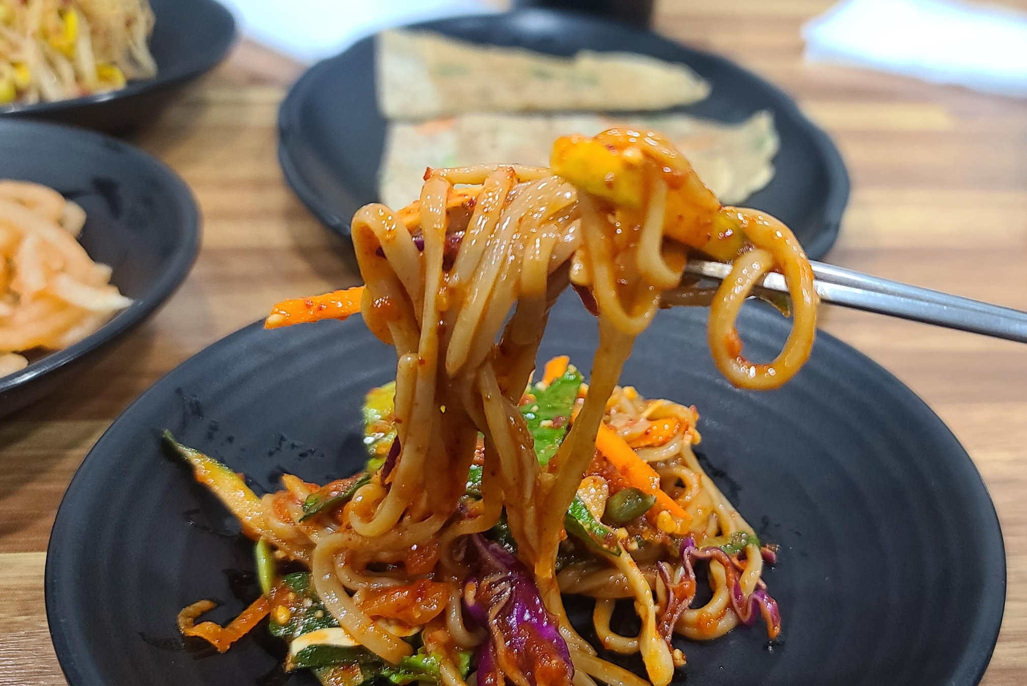 밑반찬을 맛있게 먹는동안 쟁반국수가 나와서 맛을보니 야채의 아삭함과 도토리 면발의 부드러움 그리고 들깨 베이스의 고소함과 양념의 상큼함이 어우러져 천상의 맛을 자아내고 있습니다. 매우 부드럽게 느껴지는 도토리 면발은 호불호가 갈릴 수는 있겠지만 양념과 야채의 아삭함 그리고 끝맛에 느껴지는 특유의 고소함은 정말이지 젓가락질을 멈출수가 없게 만드는 마성의 맛이라는 것을 느끼게 해줍니다. 임자탕이 주 메뉴인데 쟁반국수에서 벌써부터 마음을 빼앗겨버리게 되어버립니다.
