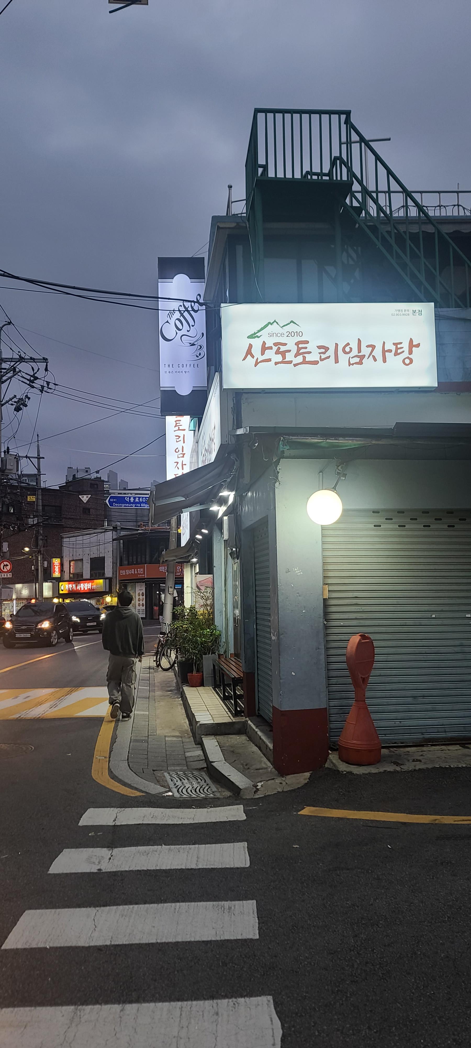 창동 신창시장 TV에도 자주 나오는 맛집이 많은 골목이며 안쪽으로 들어가면 줄서서 먹는 맛집으로 유명한 산도토리 임자탕이 나옵니다. 대로 주변도 아니고 외진 시장 골목인데도 장사가 잘되어 가게를 확장하여 가운데 커피숍을 두고 양옆으로 산도토리 임자탕 간판이 보이는게 소문난 맛집이라는 것을 반증하고 있으며 가운데 커피숍은 최고의 위치선정이라는 것을 보여주고 있습니다.
