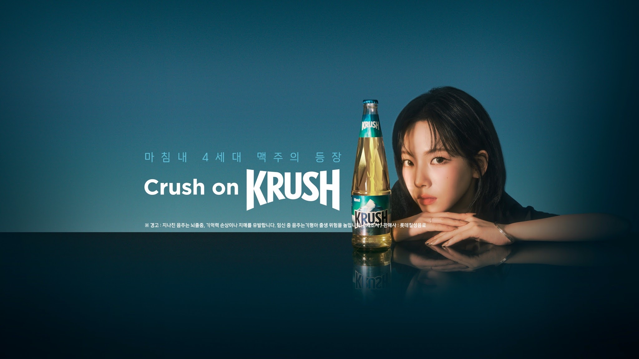 신제품 크러쉬의 광고모델은 인기 K팝 걸그룹 에스파의 멤버인 카리나 (유지민)를 발탁하였으며, 이는 2030 젊은 세대를 공략하기 위하여 영향력이 높은 20대 초반 인기 아이돌을 모델로 기용하여 큰 인기를 끌려는 시도로 보입니다. 카리나의 만화같은 비주얼과 풋풋한 젊음이 느껴지는 이미지는 크러시 맥주가 추구하는 청량함과도 무척 비슷한 이미지이며 모델 선정을 두고 제품의 이미지와 무척 잘 어울린다는 반응이 있는 반면, 23세인 나이에 주류 광고 모델을 하기에는 너무 어리고 학생들에게 음주를 조장하는 측면이 있다는 부정적인 의견이 존재하기도 합니다.