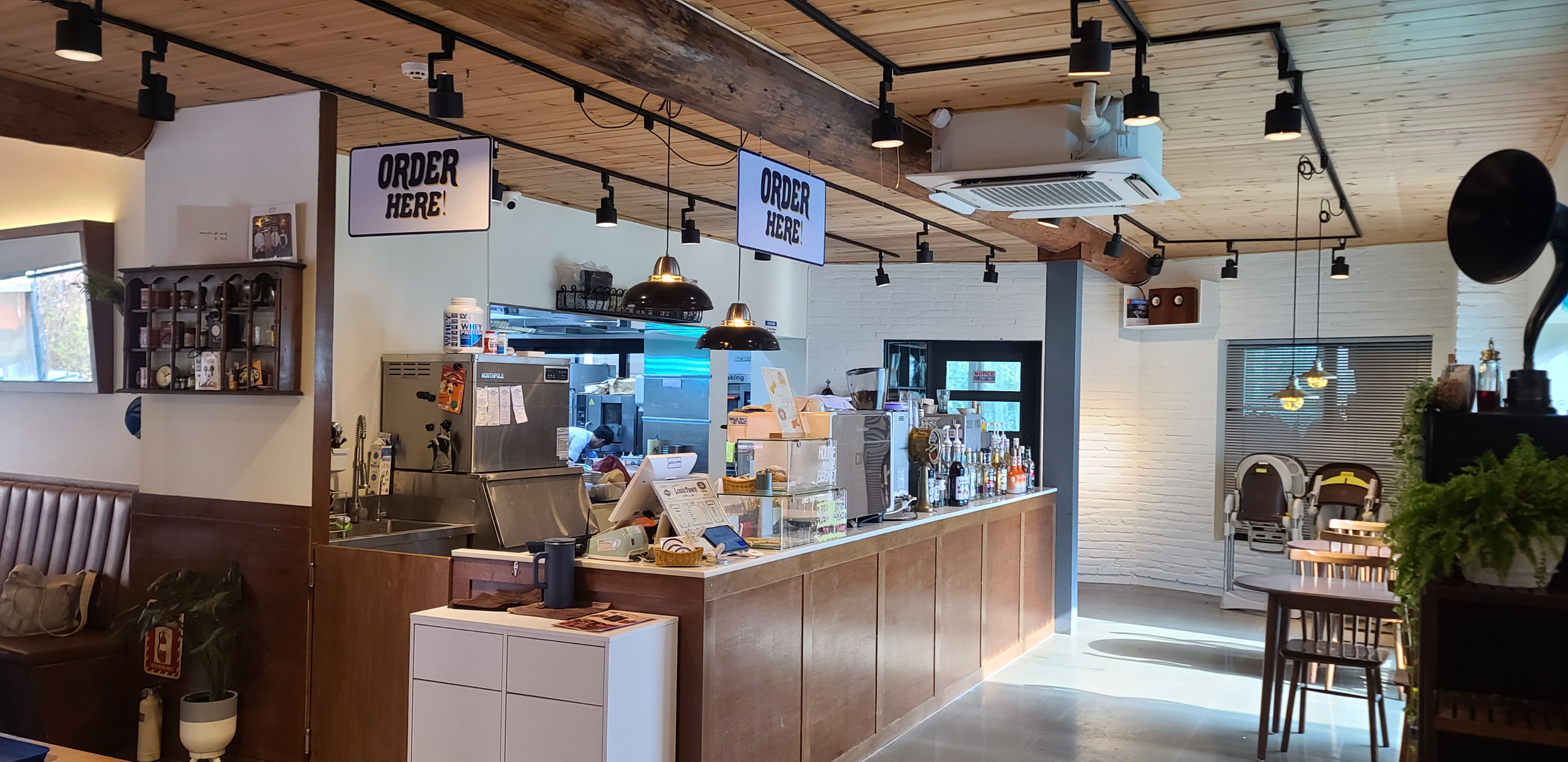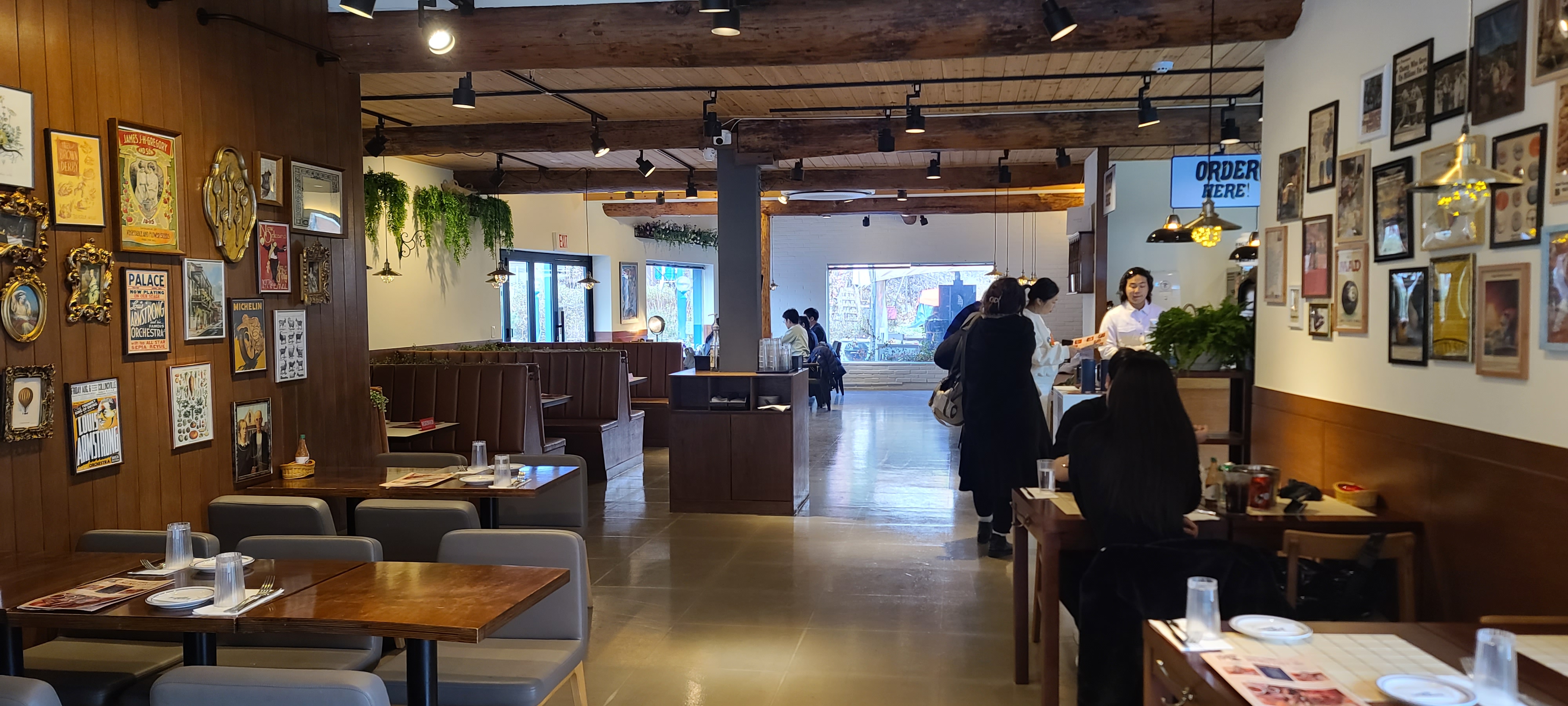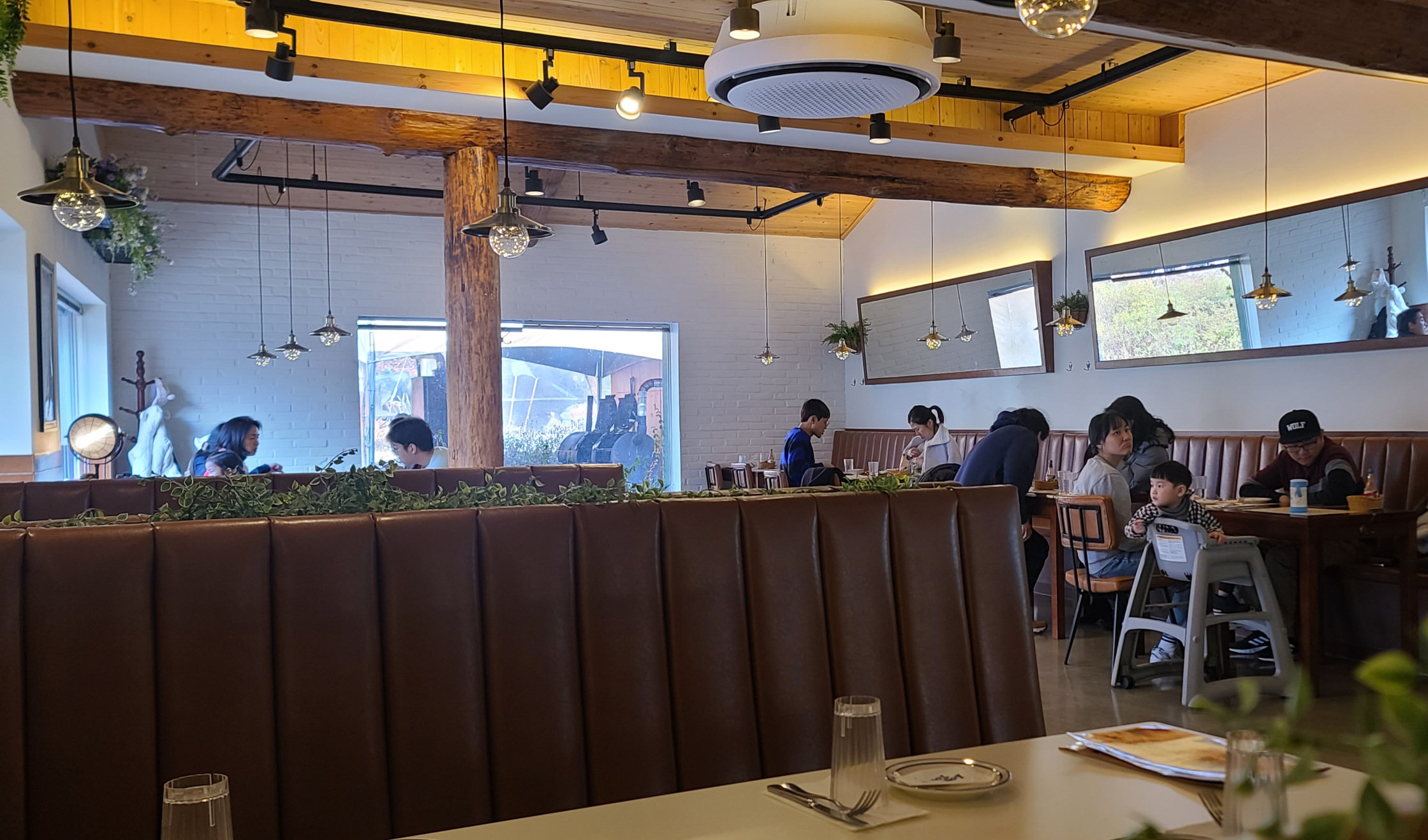 좌석은 2인용부터 4인용 단체석까지 가족단위로 많은 사람들이 와도 앉을 수 있도록 구성해 놓은 것이 보이며 비교적 비수기인 초겨울 늦은 점심시간인데도 사람들이 많은 것을 보아 인기가 많은 것을 짐작케 합니다. 방문하는 사람들은 꼭 반려견이 없더라도 식사를 하는 것을 보면 분위기라던지 음식의 가성비에 끌려 찾는 사람들도 많겠구나 하는 예상을 해보게 됩니다.