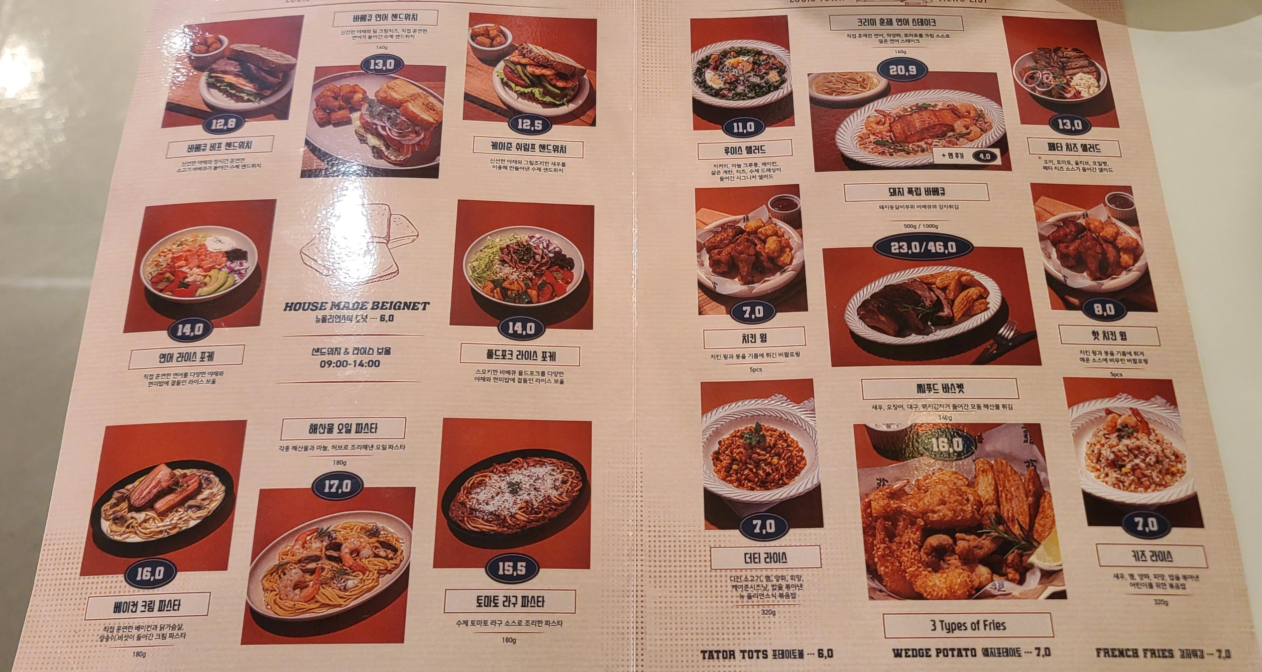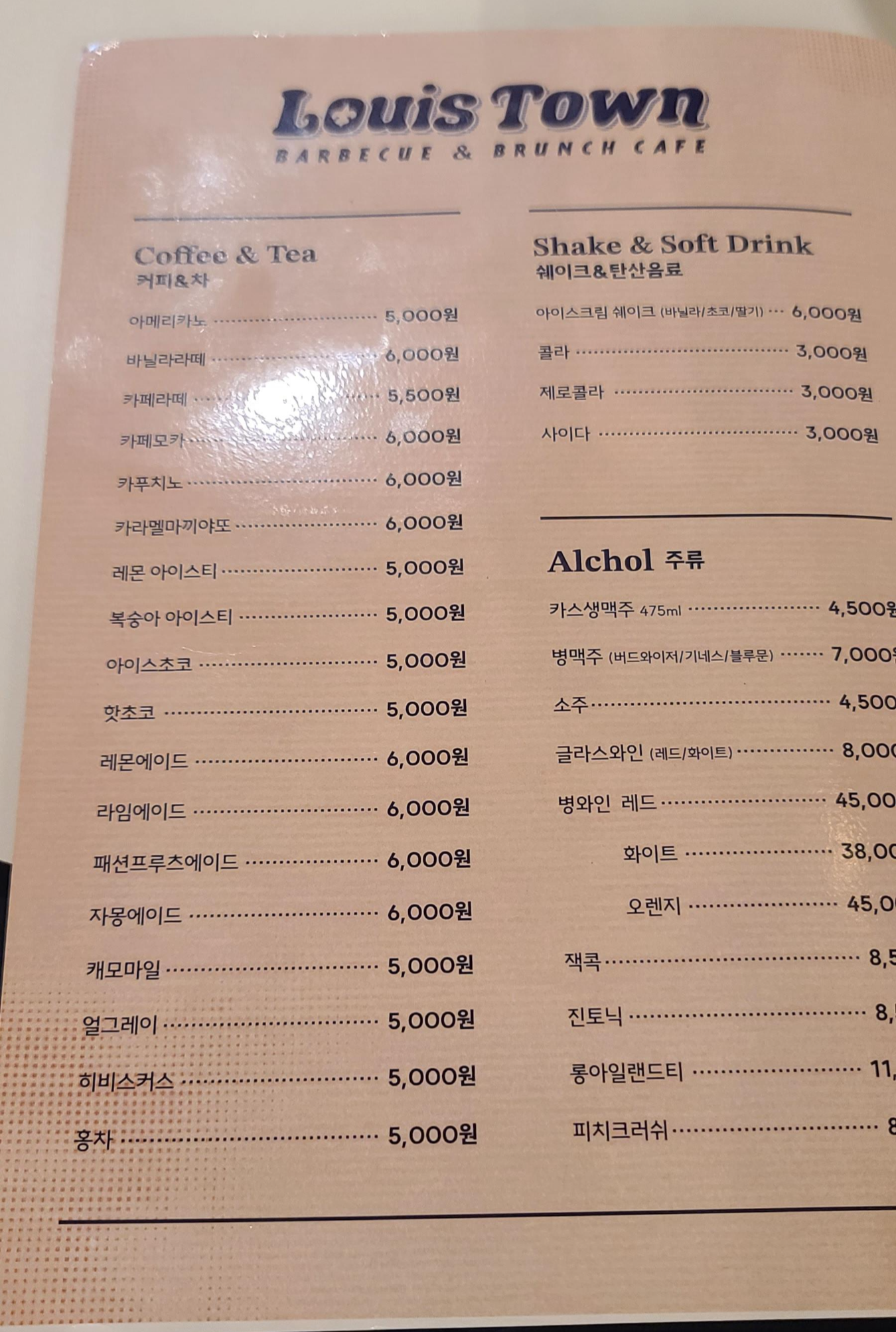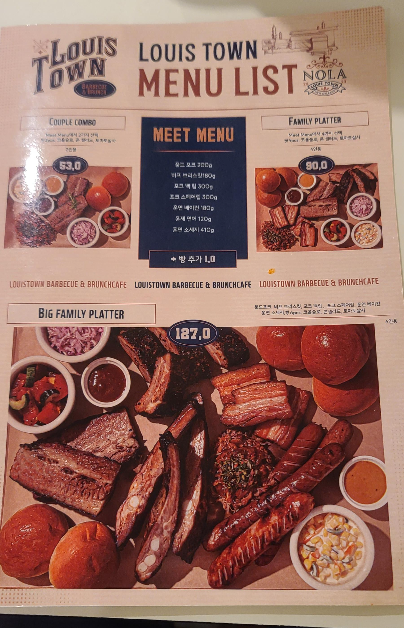 자리를 잡고 메뉴판을 살펴봅니다. 루이스타운은 바베큐 전문점인 만큼 그릴에 직접 구운 바베큐가 메인메뉴이며 취향에 따라 식사를 할 수 있도록 파스타, 치킨, 볶음밥, 샐러드, 샌드위치, 포케 등 다양한 메뉴가 있어서 선택의 폭이 무척 넓은 것이 특징입니다. 바베큐를 패밀리 플래터로 넉넉하게 주문하고 야채가 듬뿍있는 포케와 탄수화물 중독자들을 위한 2가지 라이스를 주문해봅니다.