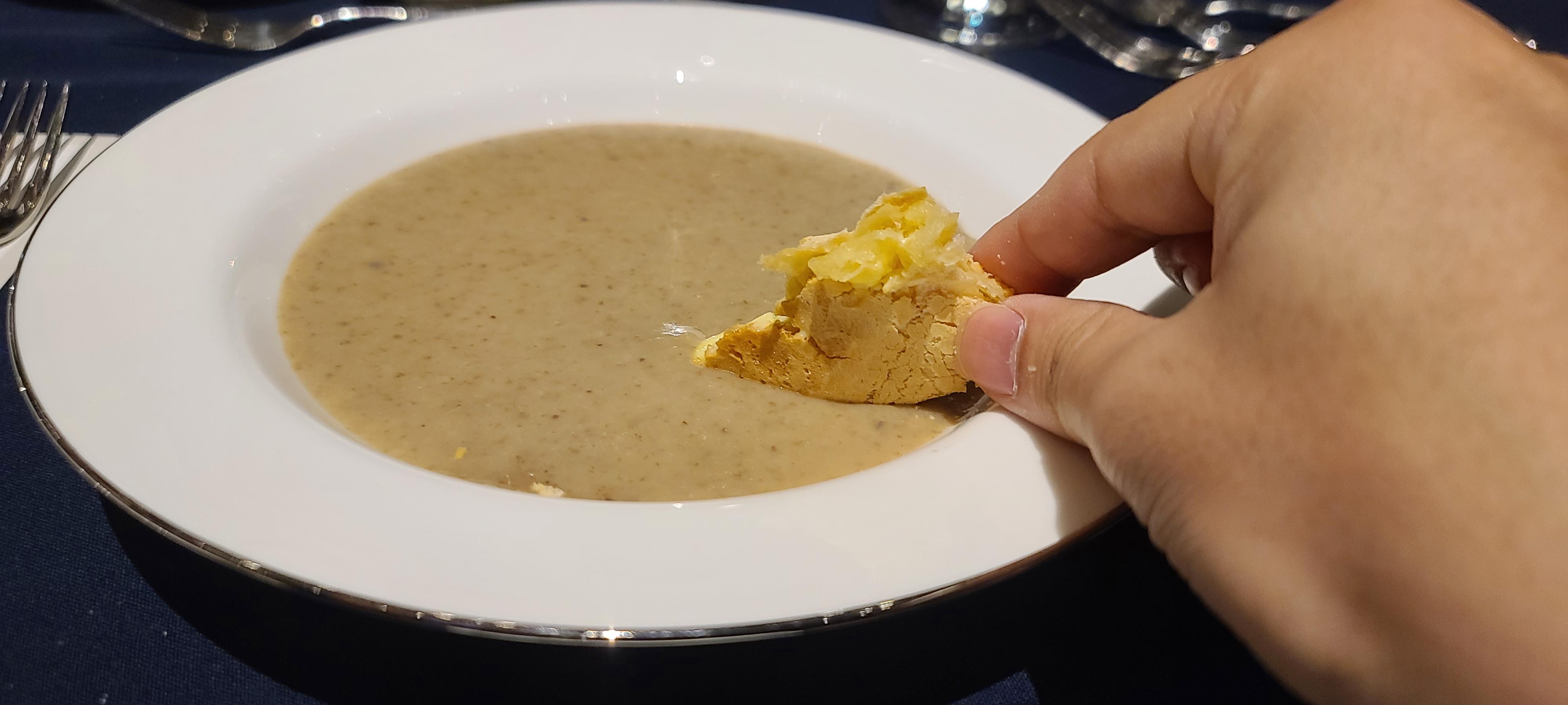 에피타이저 다음에는 속을 달래줄 고소한 포치니 버섯수프가 나왔습니다. 고소한 닭육수와 버섯의 감칠맛이 어우러지는 수프로 같이 곁들여 나오는 빵을 찍어먹으니 속이 채워지면서 데워지고 맛있는 음식을 먹을 준비가 되어지고 있습니다.