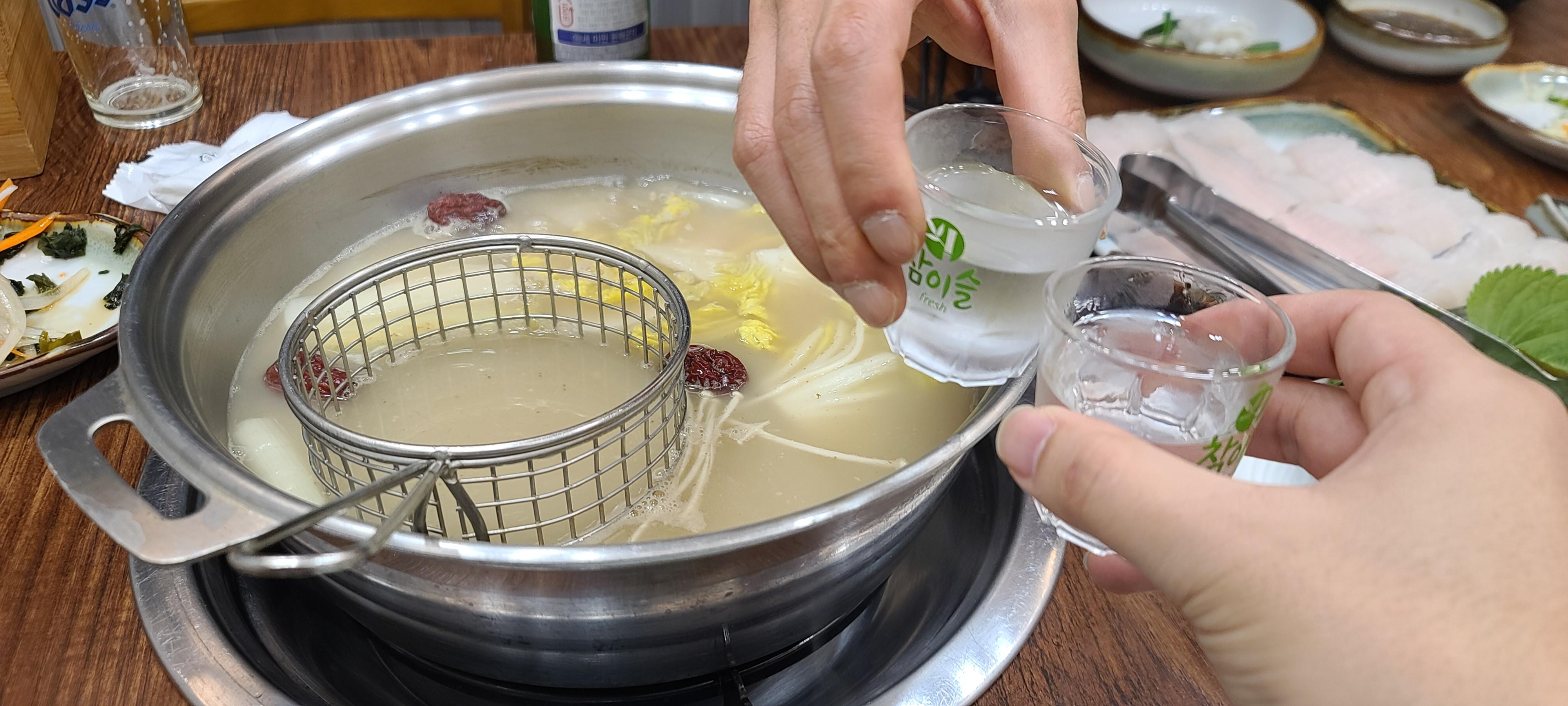 룸이라 조용하고 서로 대화도 하면서 장어에 소주한잔 하니 참으로 분위기가 좋습니다. 국물맛을 보니 비린맛이 많이 남아있는게 비린맛에 민감한 사람이라면 매우 호불호가 갈릴 수도 있으니 미팅이나 접대자리에서는 참으로 주의해야 하는 종류라는 생각도 들게 됩니다.