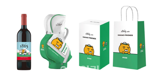 주류제품의 컬래버도 올해 큰 인기를 가져다준 트렌드로 캐릭터, 단체, 핫플 등 다양한 요소와 협업(컬래버)을 통해 만들어낸 새로운 주류제품들로 소비자들에게 큰 인기를 끌었습니다. 1865와인은 카카오프렌즈와 컬래버를 통해 1865 카카오프렌즈 골프에디션을 출시하였으며 각 제품별 어울리는 캐릭터가 와인레이블에 디자인되었으며 또한, 골프로 유명한 카카오프렌즈가 디자인된 전용 골프백 및 액세서리를 이용한 구성에 카카오골프로 유명한 프렌즈 캐릭터를 사용함으로서 큰 인기를 거두었습니다.