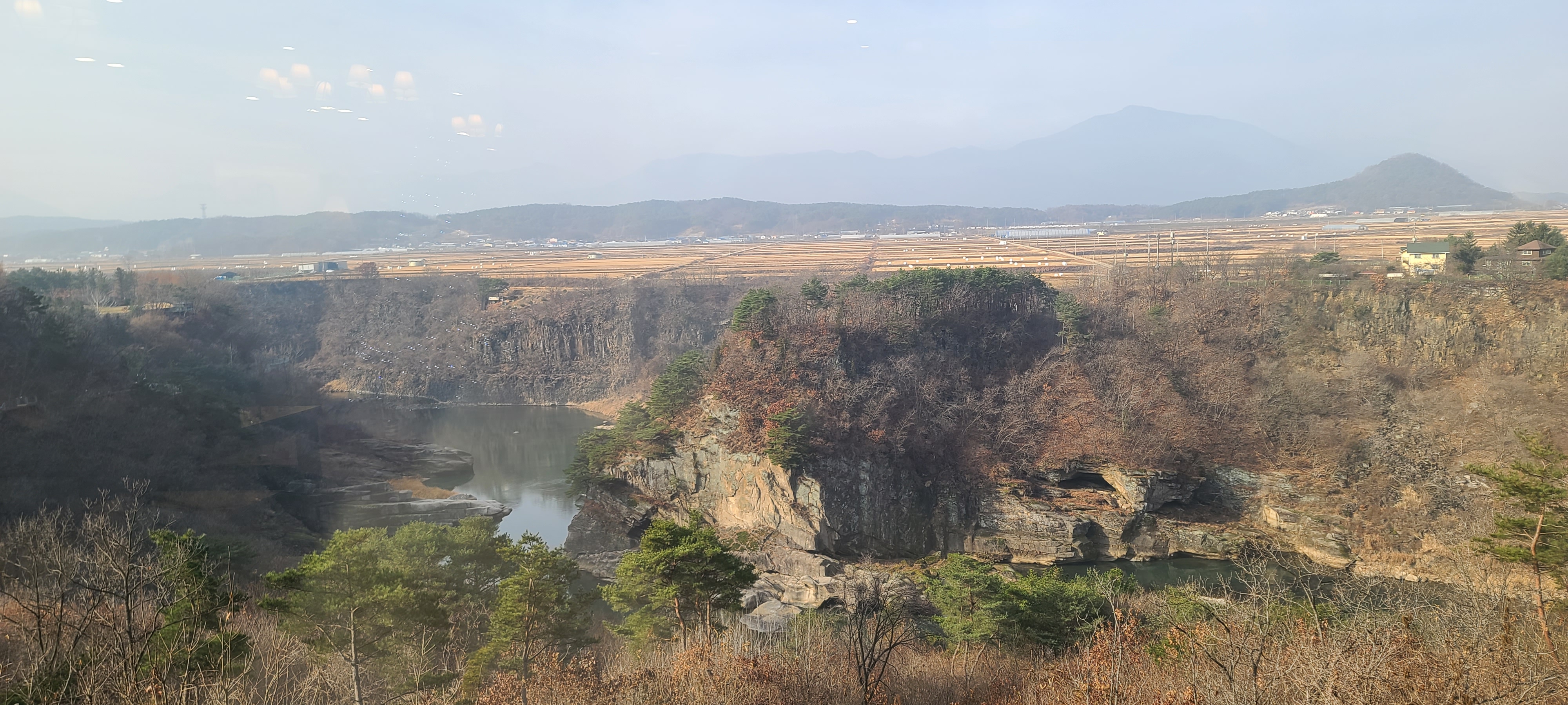 클럽하우스 안쪽에서 대형유리창을 통하여 한탄강과 계곡의 자태를 바라보니 역시 철원 산악지대와 평야가 만나는 절경이 느껴지면서 골프를 치기 전부터 풍경에 압도당하는 느낌을 받게 됩니다.