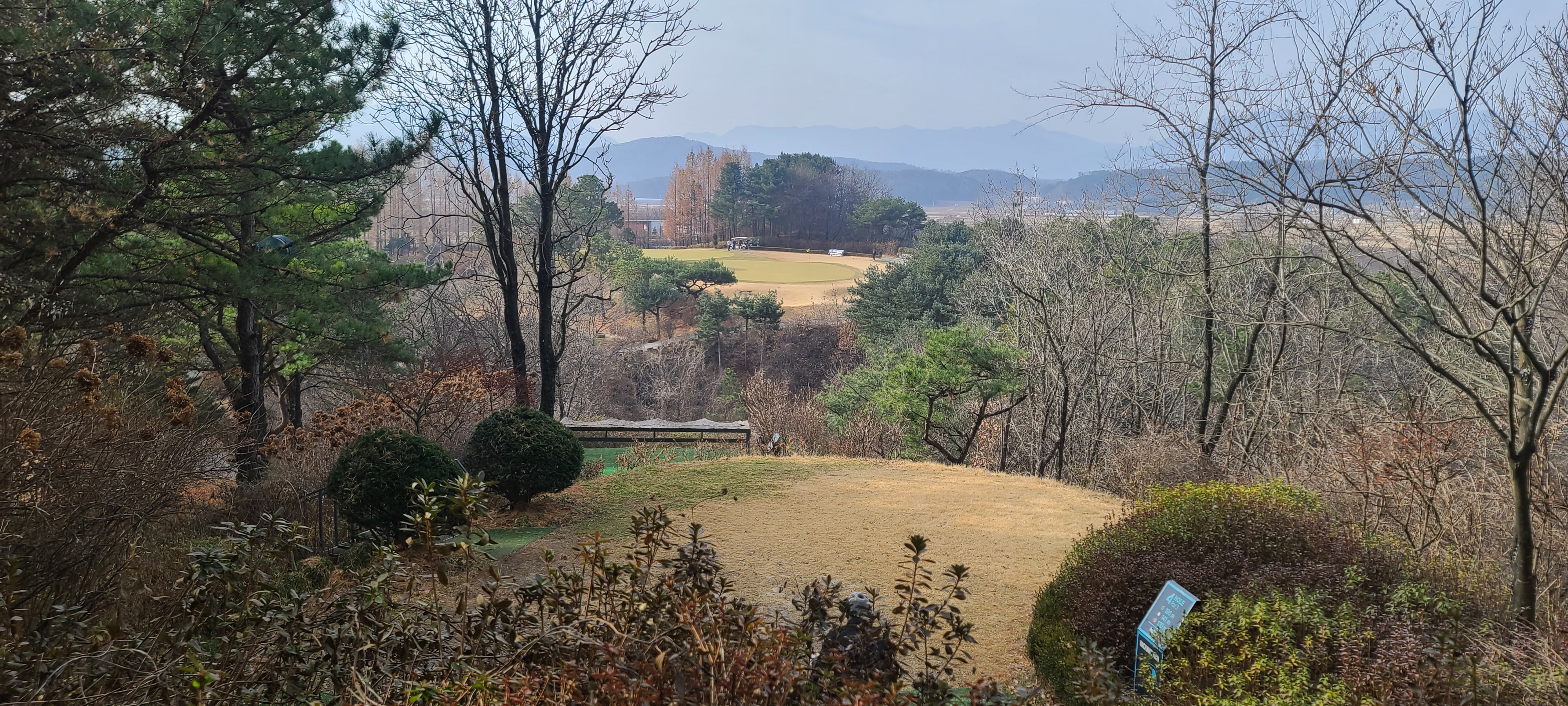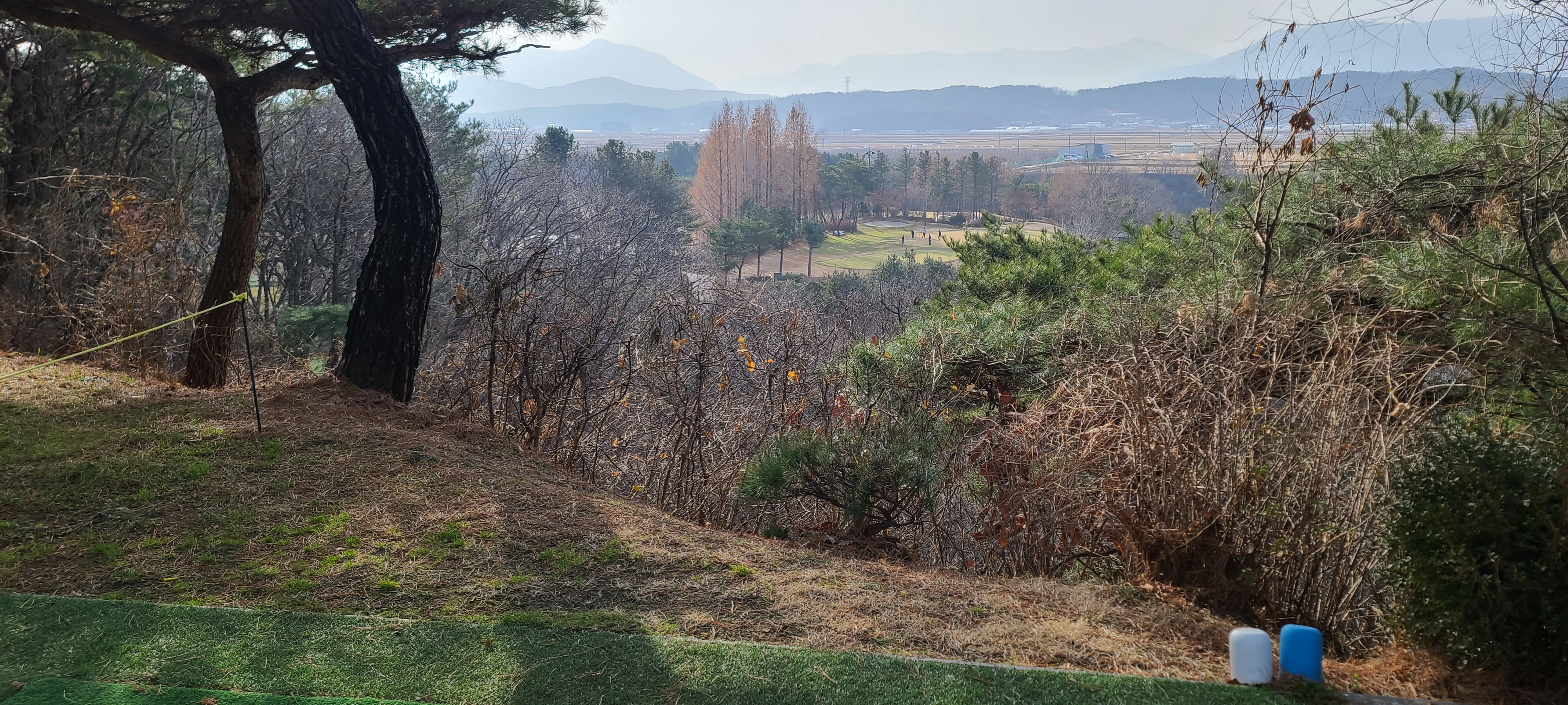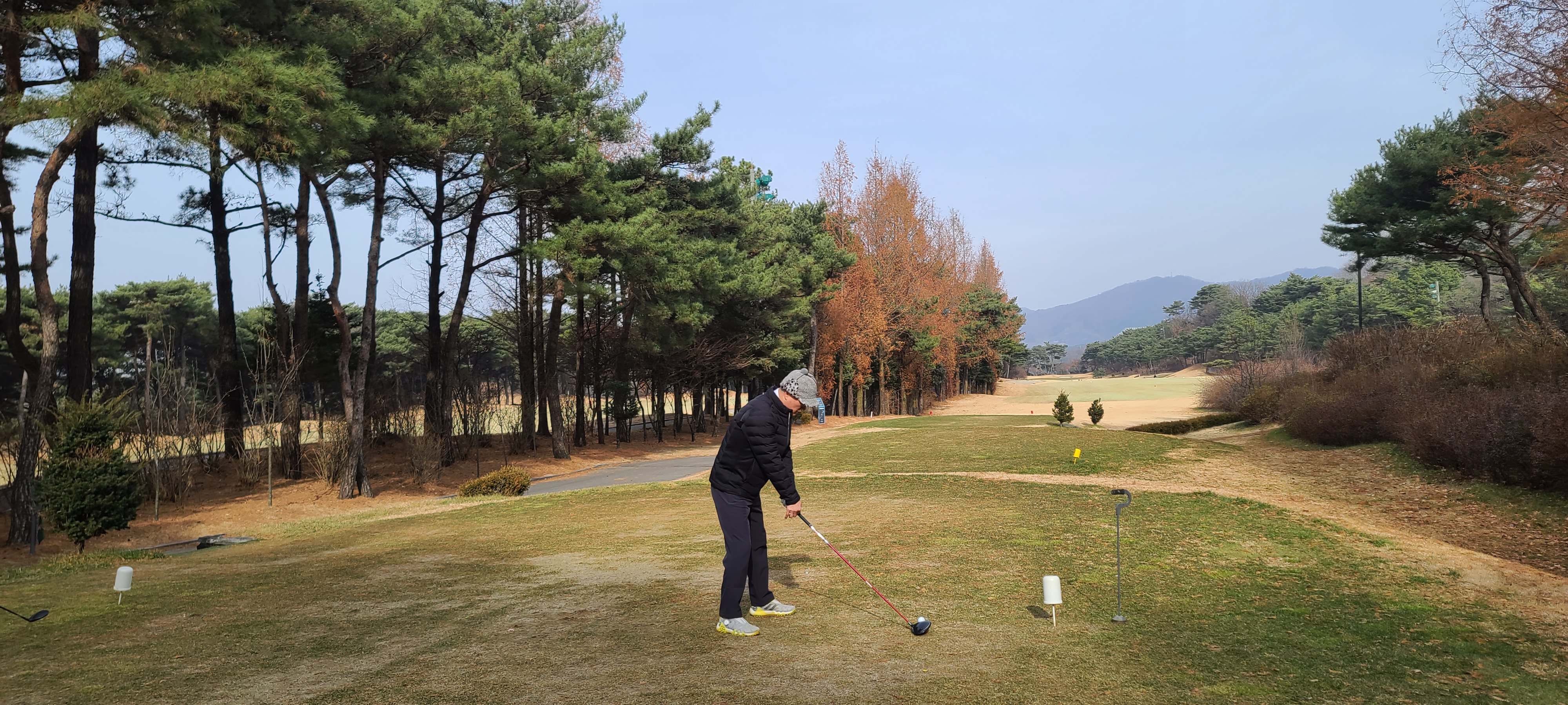 첫번째 홀 티샷을 하고 걸어가면서 한탄강CC의 잔디상태를 확인합니다. 풀이 짧은 조선잔디 페어웨이 세팅에 디봇이 비교적 적어 관리가 비교적 잘 이루어져 있는 것을 볼 수 있으며 12월인데도 푸르름을 나타내주는 조선잔디의 생명력에 감탄이 나오고 있습니다. 세컨샷을 쳐보았는데 잔디가 살아 있어 공이 떠있는 느낌이 드는게 오늘 플레이는 무언가 잘 이루어질 것같은 느낌이 들고 있습니다.