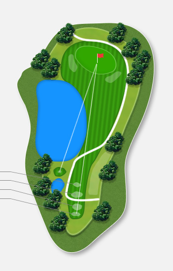 압박감이 들지만 평소의 본인 스윙의 루틴을 생각하며 공만을 바라보고 성공적으로 티샷을 마치는 모습입니다. 티샷이 온그린을 하더라도 그린경사가 일정하지 않기 때문에 퍼팅까지 신중하게 공략해야 파세이브가 가능한 홀이라고 할 수 있습니다.