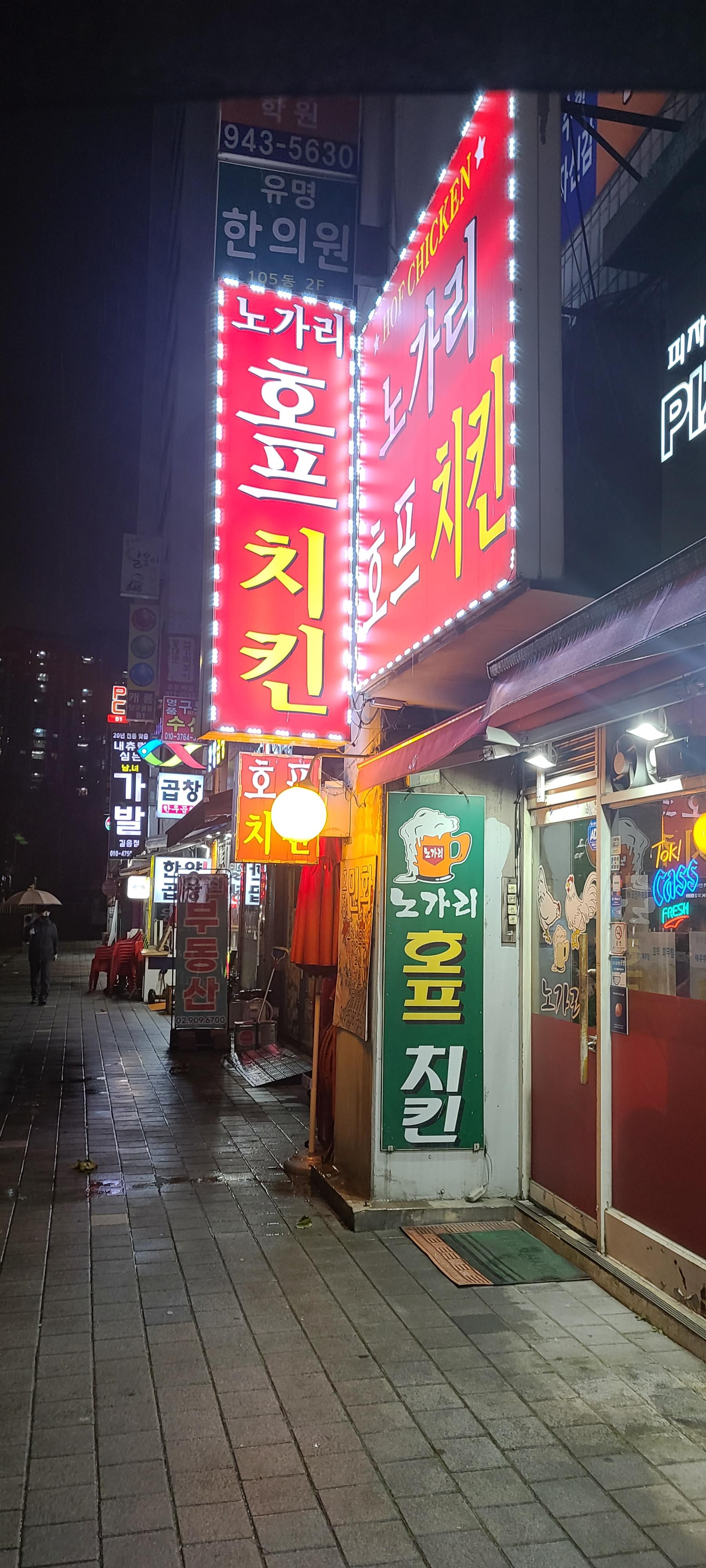 비가 부슬부슬 오는 저녁의 길음역 앞 삼부아파트상가 거리 출퇴근길 많은 사람들이 모이는 길음역과 버스정류장 바로 앞에 위치한 길음뉴타운의 관문이라고도 할 수 있는 곳으로 항상 사람들이 많고 상가들이 일렬로 펼쳐져 있는 제법 상권이 발달해 있는 거리이기도 합니다. 비오는 밤거리를 걷다가 왠지 눈에 들어오는 빨간 간판 조금은 토속적이고 한잔하기 좋게 생긴 노가리호프 치킨 글자에 끌리듯이 가게로 들어가보게 됩니다.