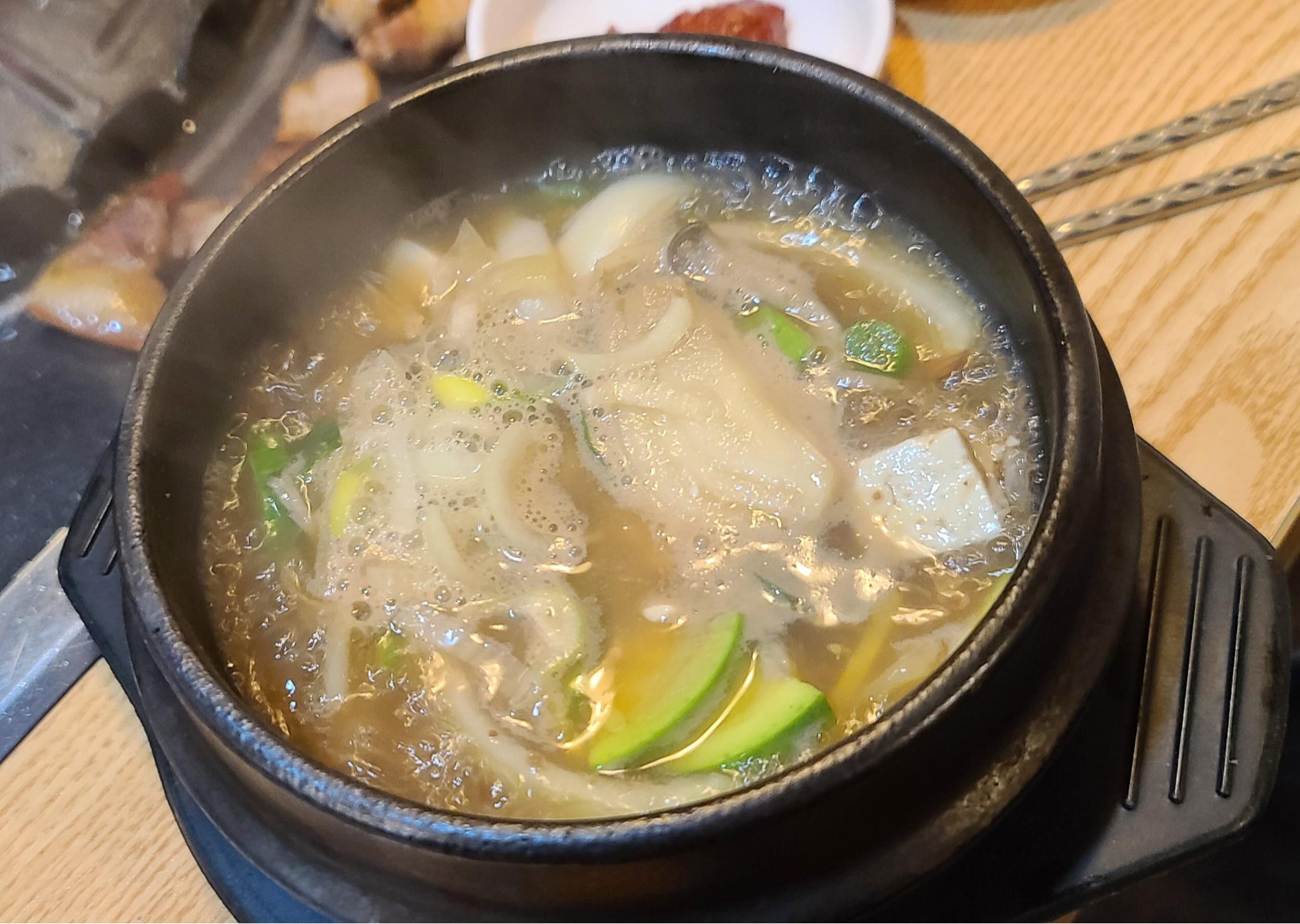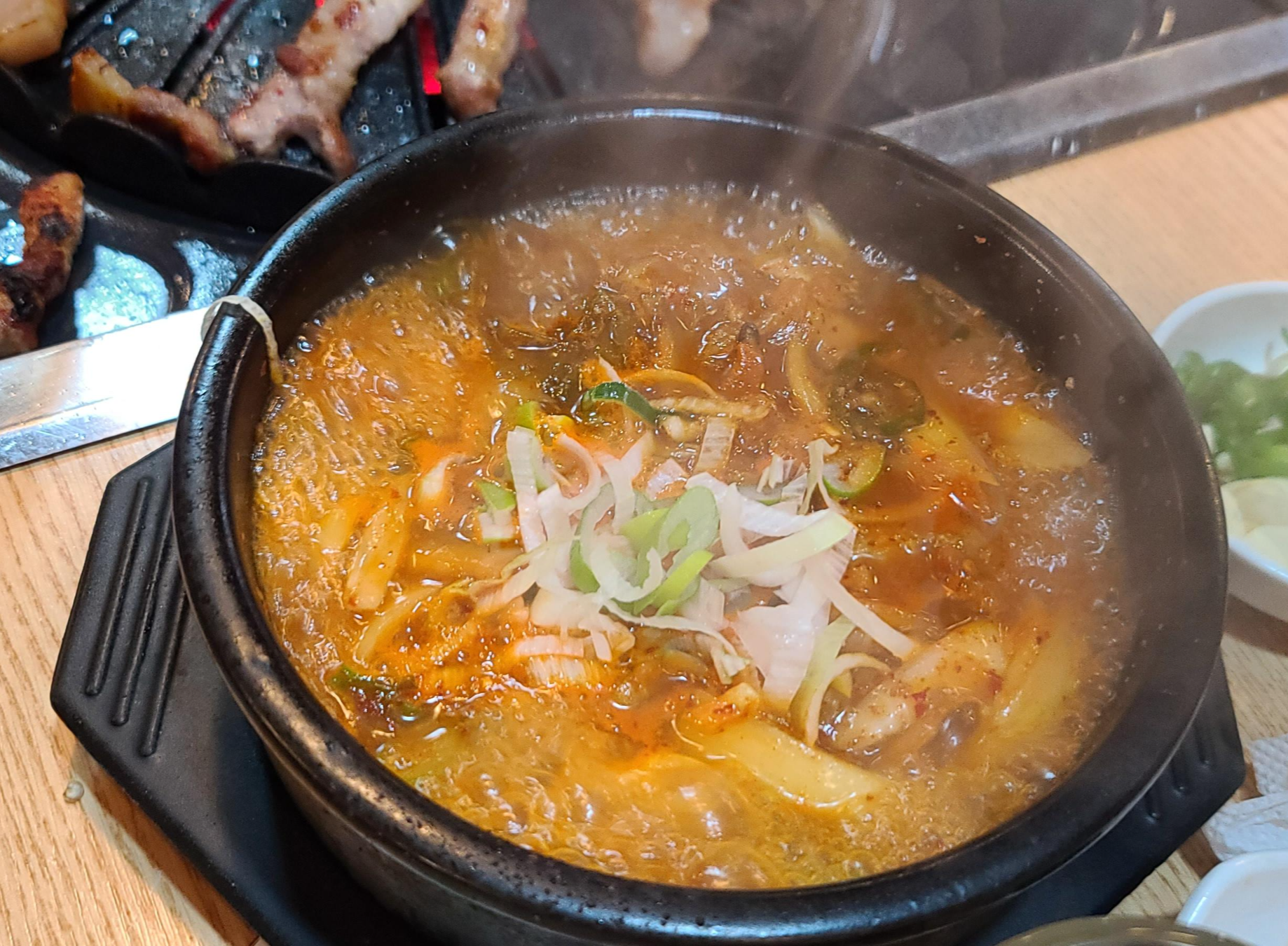 모든 메뉴를 먹어보는 시간이기에 김치찌개와 된장찌개도 주문하여 맛을 보니 김치찌개는 조미료맛이 듬뿍 느껴지는 이거 하나만으로 식사만 팔아도 제법 손님이 많은 것 같은 그런 맛이라 감탄을 하게 되지만 된장찌개는 슴슴하니 싱거운 된장국의 느낌이 더욱 강한 고추도 고춧가루도 들어가지 않은 정통 된장국의 심심한 맛을 보여줘서 무언가 통일되지 않은 맛의 느낌이 상당히 신기하게 전해져오고 있습니다.