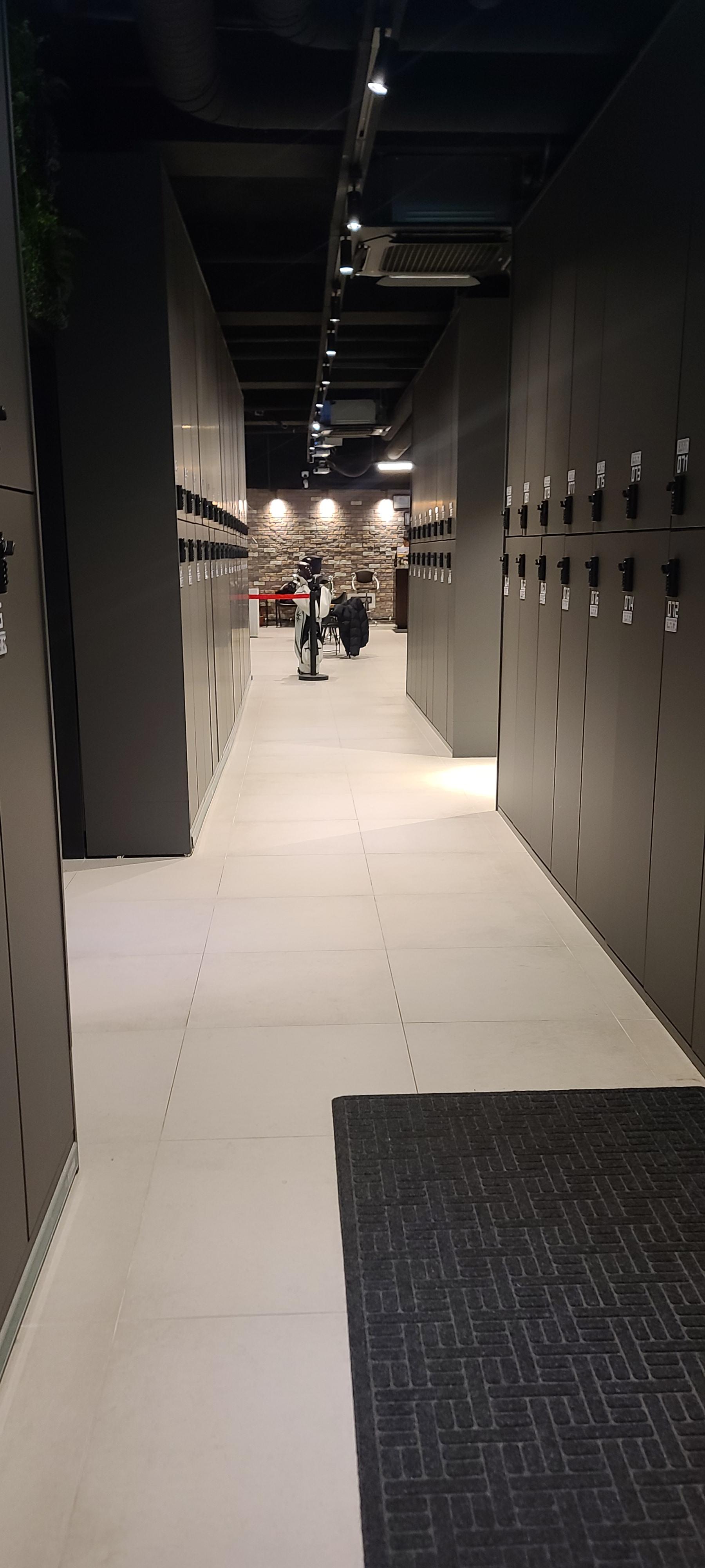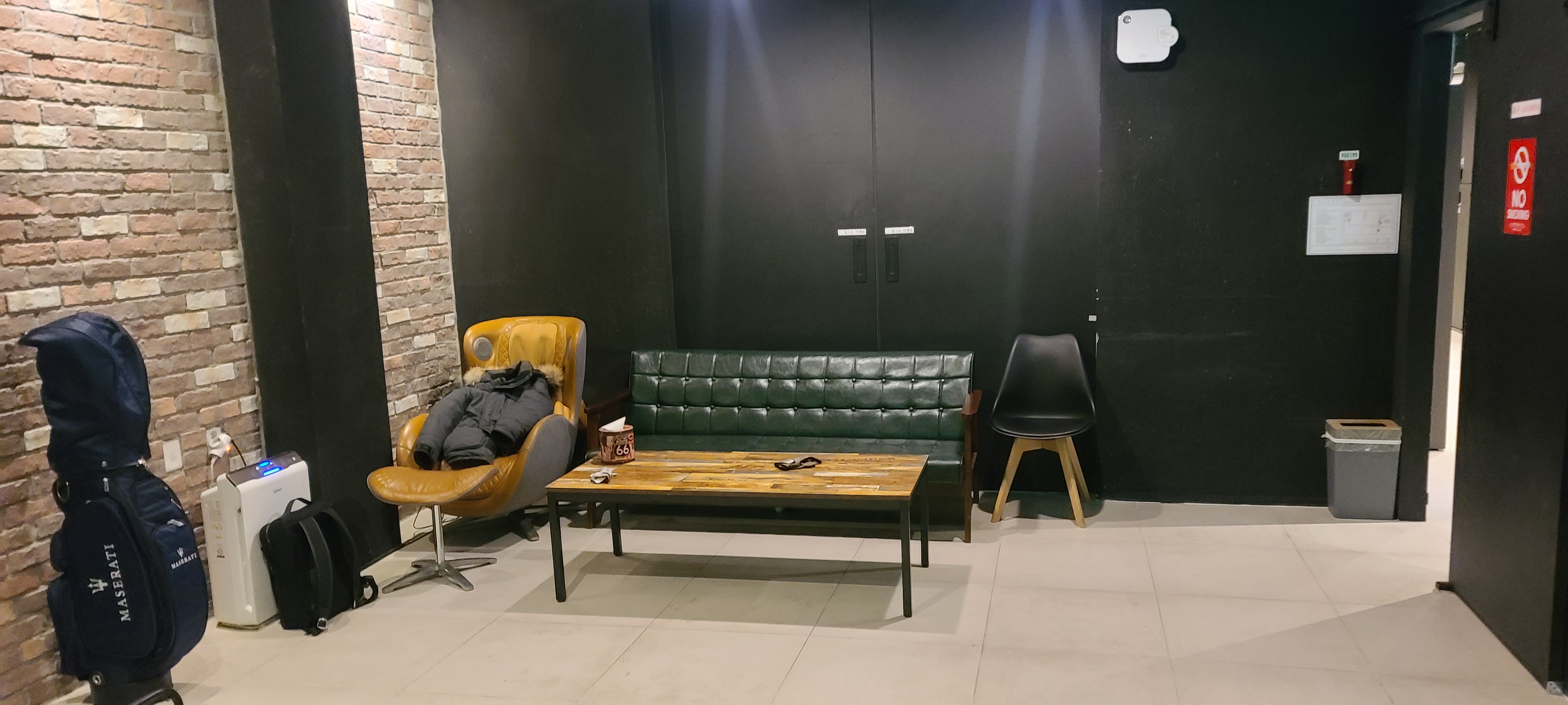 복도 안쪽을 둘러보면 회원들이 짐을 보관할 수 있는 캐비넷이 설치되어 있고 안쪽으로는 스크린골프를 칠 수 있는 룸과 복도 끝쪽으로는 커피나 음료 간단한 간식을 보충할 수 있는 휴계실의 모습도 보입니다. 전체적인 규모는 아담하지만 인테리어를 잘해놔서인지 참으로 쾌적하게 느껴지는 공간연출이라는 생각을 하게 됩니다.