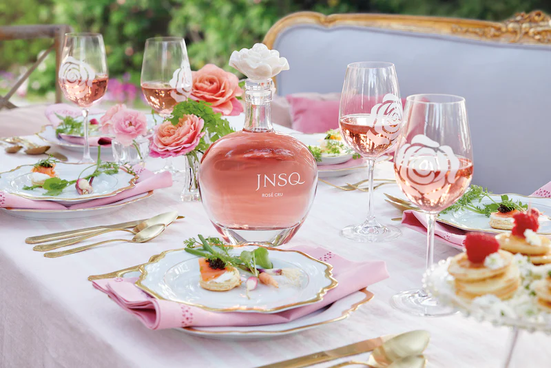 JNSQ 로제 와인은 국내에서 제이엔에스큐로 표기되며 영어약자와 같은 네이밍으로 생각하기 쉽지만 불어로 이보다 더할나위 없다는 Je Ne Sais Quoi (주느세콰)의 앞글자를 따서 네이밍한 와인제품입니다. 프랑스어 약자를 이용한 제품이기 때문에 프랑스에서 만들어진 로제와인 제품으로 생각하는 사람이 많지만 미국 캘리포니아에 위치한 파소 로블로의 와이너리에서 생산되며 캘리포니아 최고 품질의 포도를 이용하여 최고수준의 프렌치 스타일 와인을 만들어낸 다는 컨셉으로 많은 헐리우드 스타를 이용하여 홍보에 나서 인기를 얻고 있는 것이 특징인 제품이기도 합니다.
