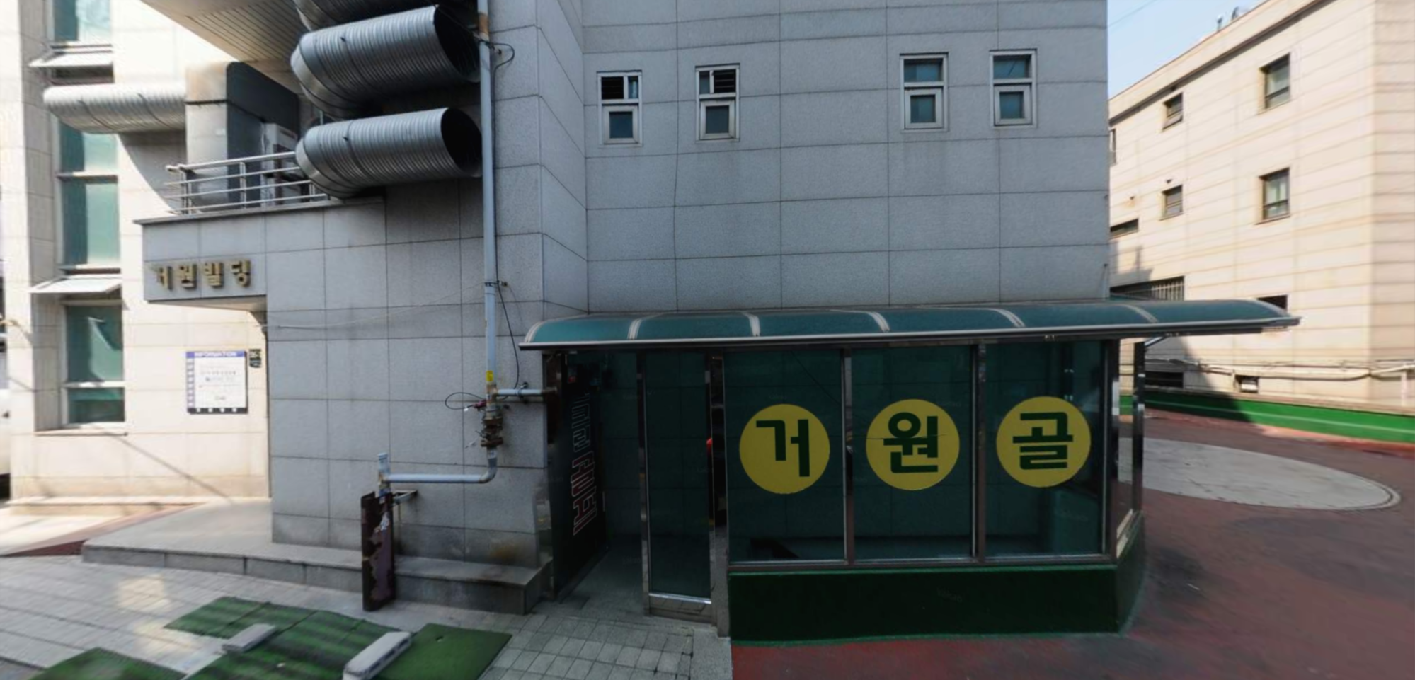 거원스크린골프존의 입구는 대로변이 아닌 건물 뒤쪽에 자리잡고 있습니다. 처음오면 엄청 헤맬것 같은 입구 구조입니다. 자세히보니 빌딩 이름이 거원빌딩이라 이름을 거원스크린으로 지은것 같습니다. 뒤쪽에는 주차장이 자리잡고 있습니다.