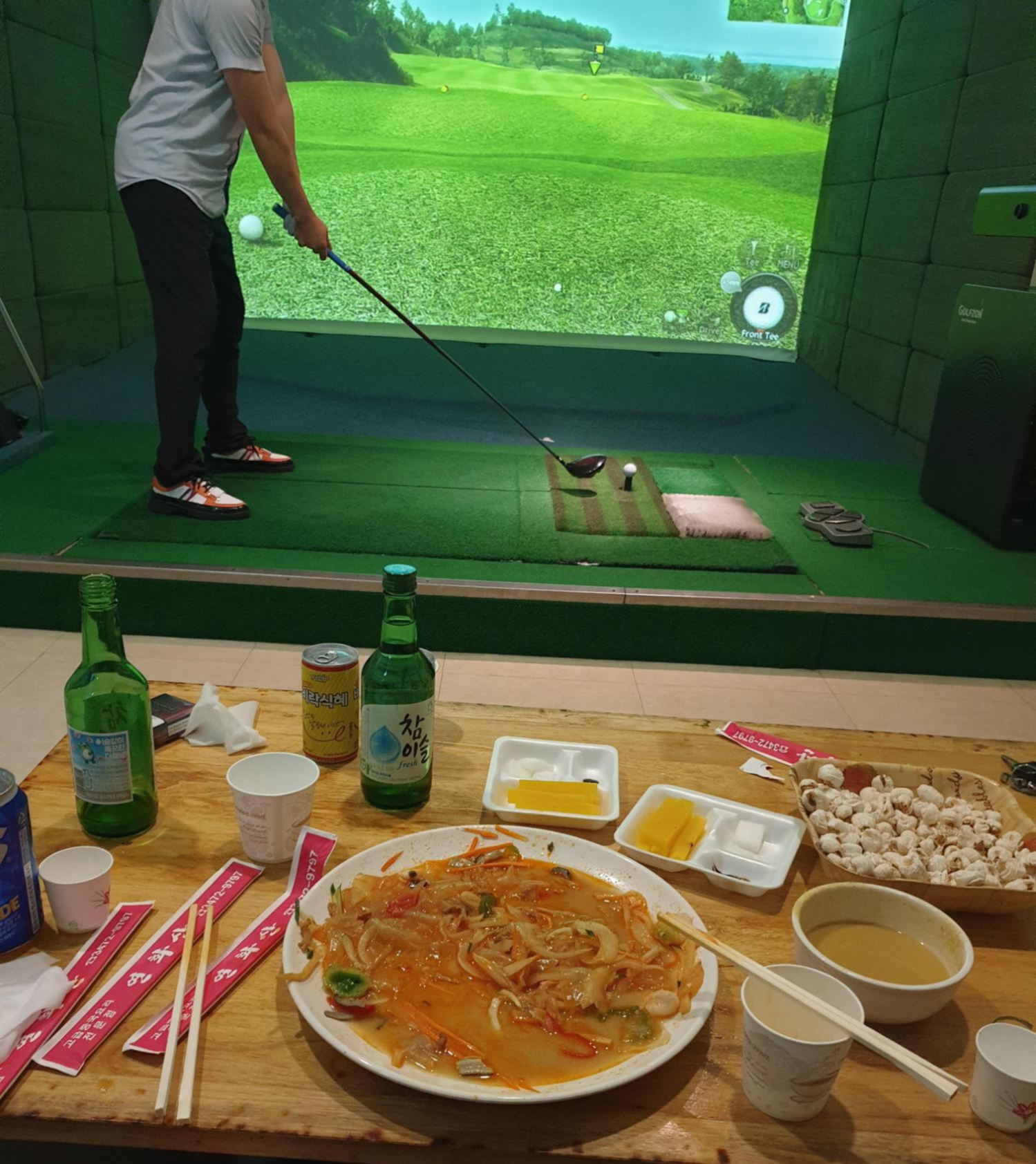 맛있는 음식과 함께 음주골프는 무르익어 갑니다. 양재역 근처 거원에서 보낸 재미있는 스크린 경기였습니다.