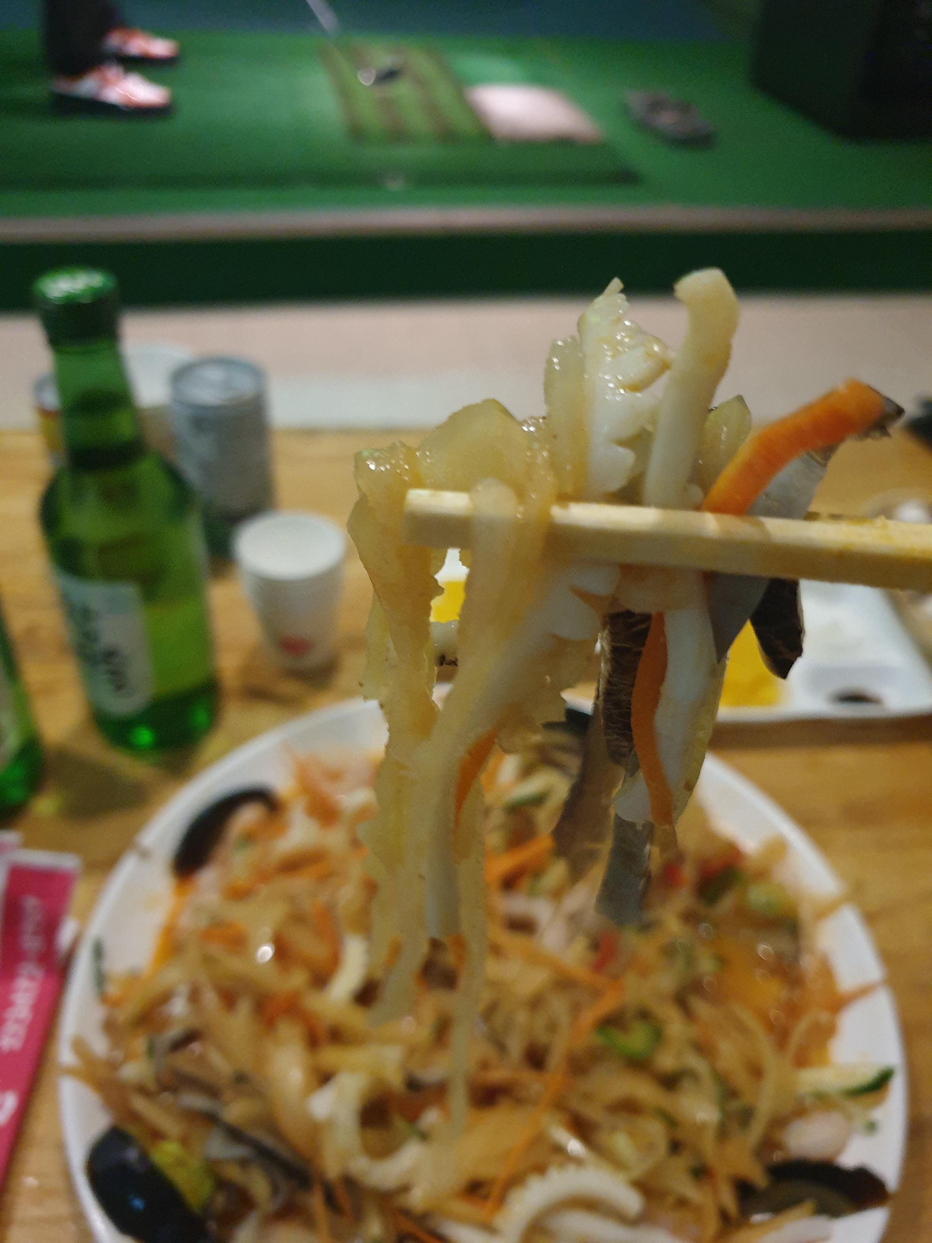 잘 섞인 양장피를 집어 먹으면서 골프를 즐겨봅니다. 스크린골프를 하면서 느끼는 소소한 행복이 아닐 수 없습니다.