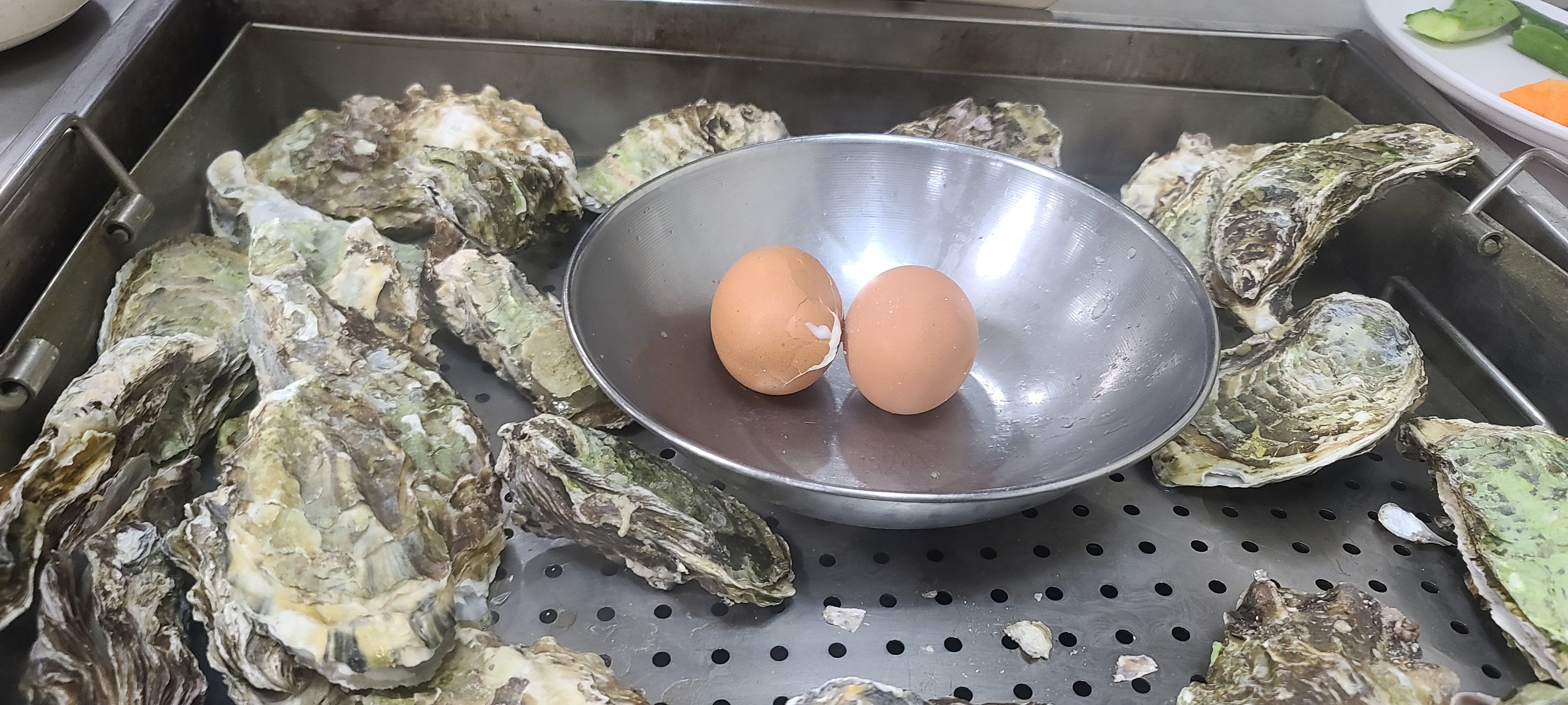맛있게 쪄서나온 굴찜의 석화껍데기를 직접 까서 촉촉한 속살을 맛보니 굴의 육즙은 가득하고 식감은 탱글하고 맛성분은 입에서 춤을추고 무척 행복한 시식의 시간을 즐겨봅니다. 굴을 먹게되면 노로바이러스 걱정을 어쩔수 없이 항상하게 되는데 굴찜은 전부 스팀으로 오랜시간 익히기 때문에 멸균작용이 저절로 되어 안심할 수 있으니 계속해서 먹게 되는 현상이 나타나게 됩니다.