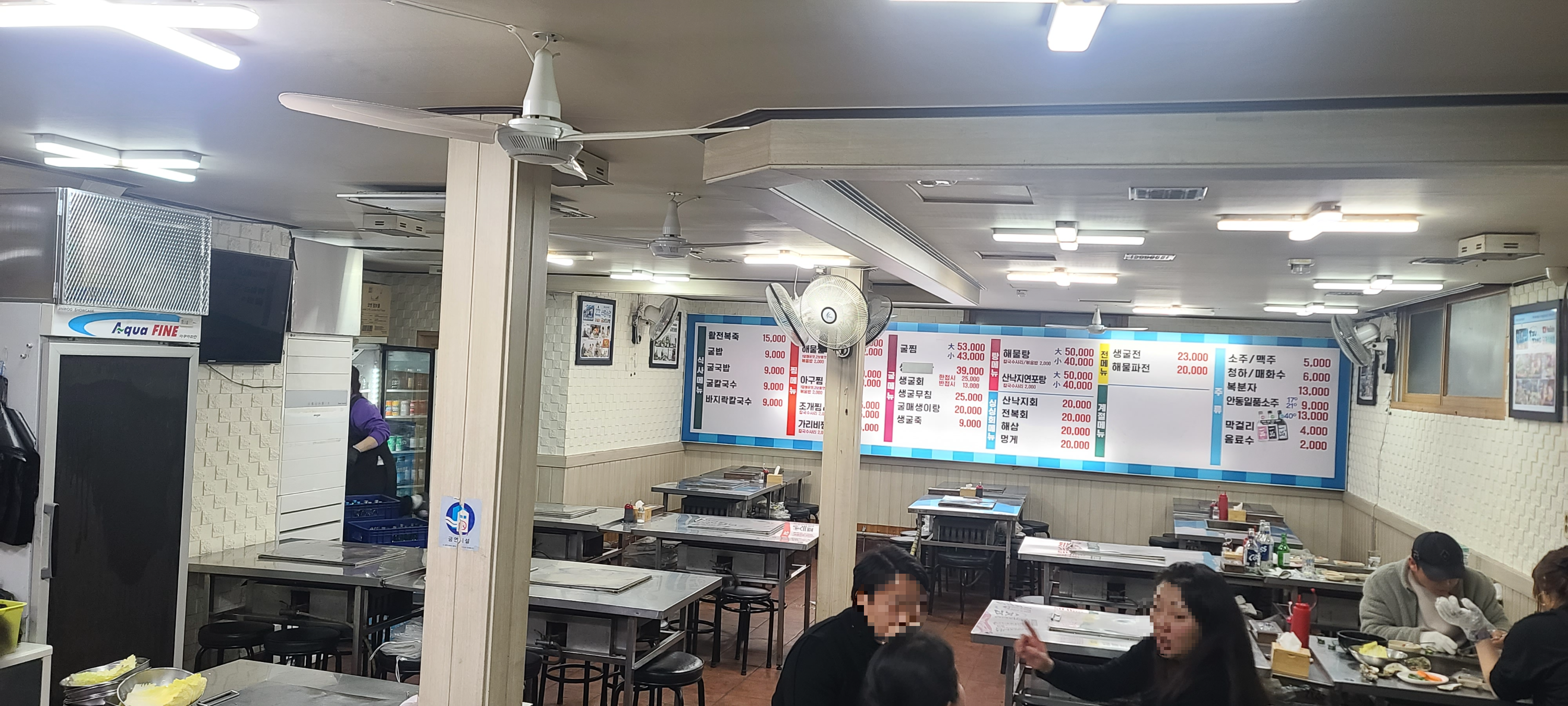 너무나 맛있는 굴찜과 해삼의 조합을 하나도 남김없이 처리한 후 가게를 둘러보니 역시 늦은시간이라 이제야 좀 사람이 빠지고 자리가 있는 모습이 보입니다만 아직도 들어오는 손님들이 있을정도로 인기가 많은 맛집이라는 것을 다시 깨닫게 됩니다.