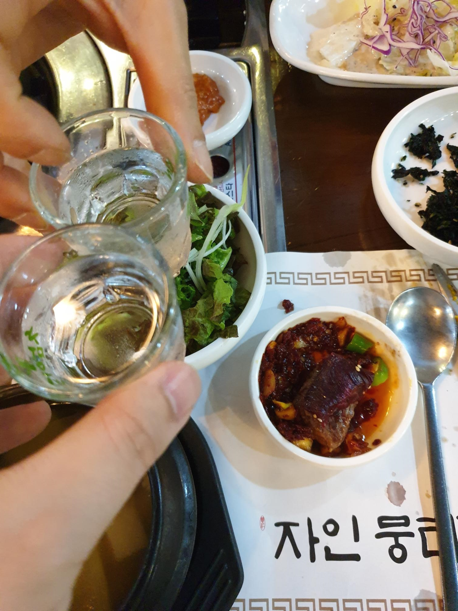 고기가 구워지는 동안 계속해서 잔을 맞추며 비즈니스 이야기를 합니다. 이 후에는 이야기꽃을 피우느라 등심사진을 찍지도 못했네요.