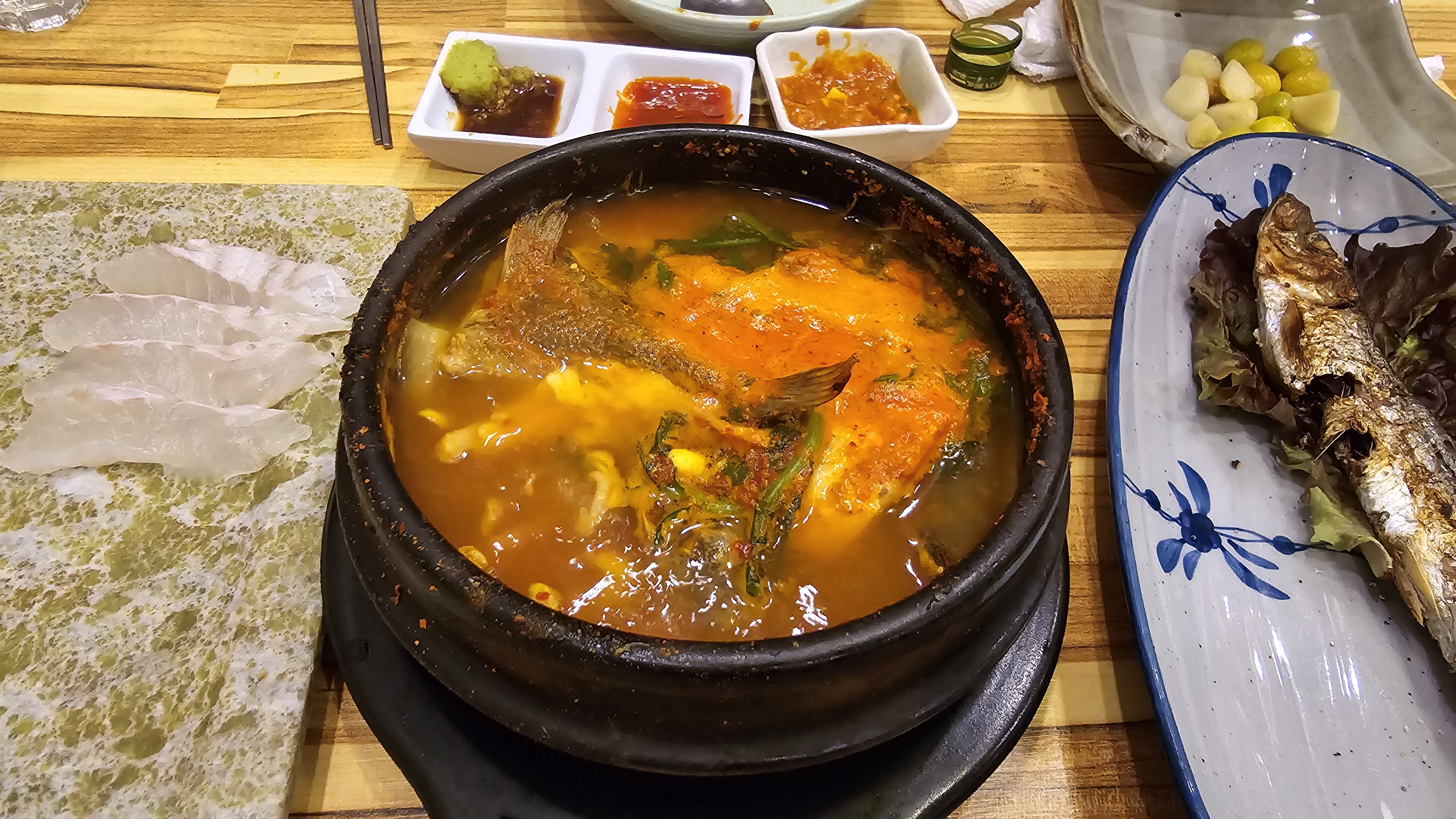 매운탕을 즐기고 마무리 마끼까지 먹으며 흡족한 식사를 마치고 계산을 하려니 이체가 안된다고 하십니다. 아니 카드가 없어서 현금을 낸다는데 안된다는게 무슨 말일까 혼란에 빠져 이체가 왜 안되냐고 물어보니 사장님이 안계시고 계좌도 모른다고 당당하게 말씀하시는 직원분을 보며 아.... 융통성이나 해결안은 무리겠구나 깨닫게 되고 세꼬시 집에서 왜 세꼬시가 큰 생선을 썰지도 않고 크게 내놓는지 모든게 깨달아지고 있습니다.