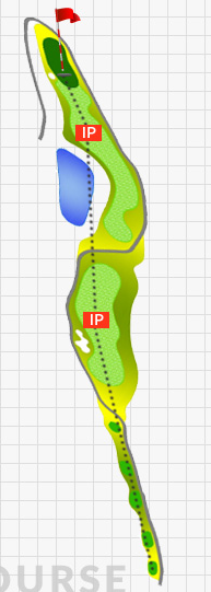 왼쪽이 답이 없으니 약간의 아웃인 궤도로 페이드 공략을 안정적으로 하는 모습입니다. 페이드샷을 구사할 수 있다면 한쪽면을 배제하기 때문에 티샷의 성공확률이 무척 올라가게 됩니다.