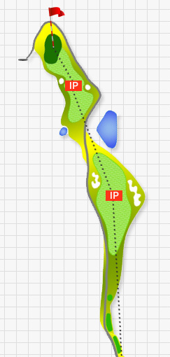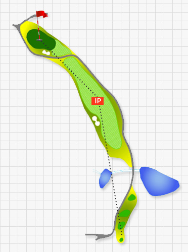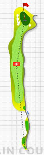 2번 484m의 파5홀로 이번에는 왼쪽이 법면이고 IP지점 끝쪽은 점점 좁아지면서 페널티 구역으로 변하는 코스로 티샷을 너무 장타도 아닌 적절히 보내놔야 수월해지는 코스입니다. 티샷 IP지점은 우측이 넓어져서 쉬우나 세컨샷 지점이 계곡을 건너가면서 좁아지게 구성되어 있어 상당히 어렵게 느껴질 수도 있습니다.
