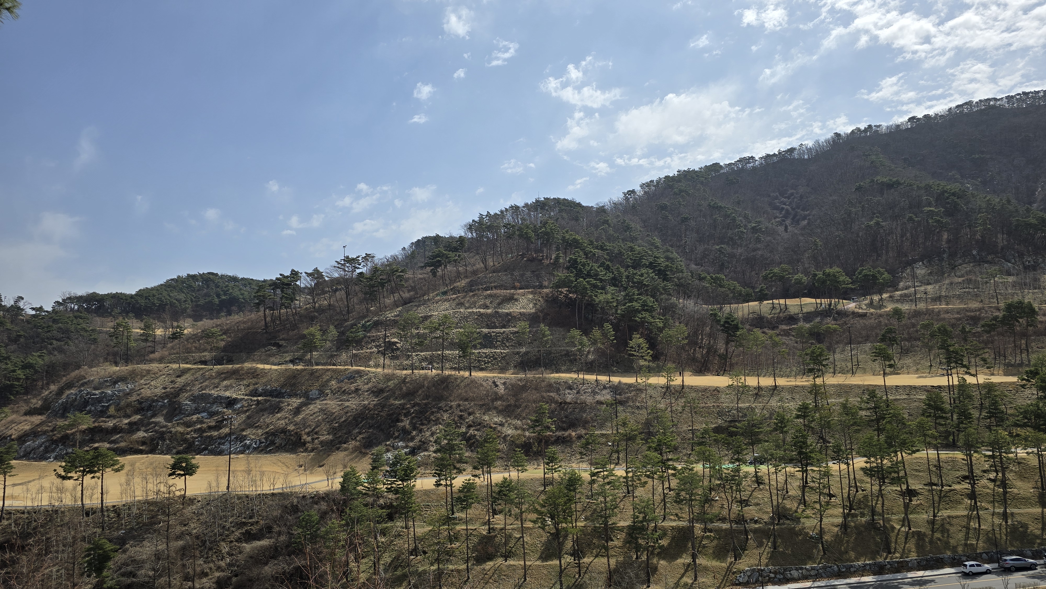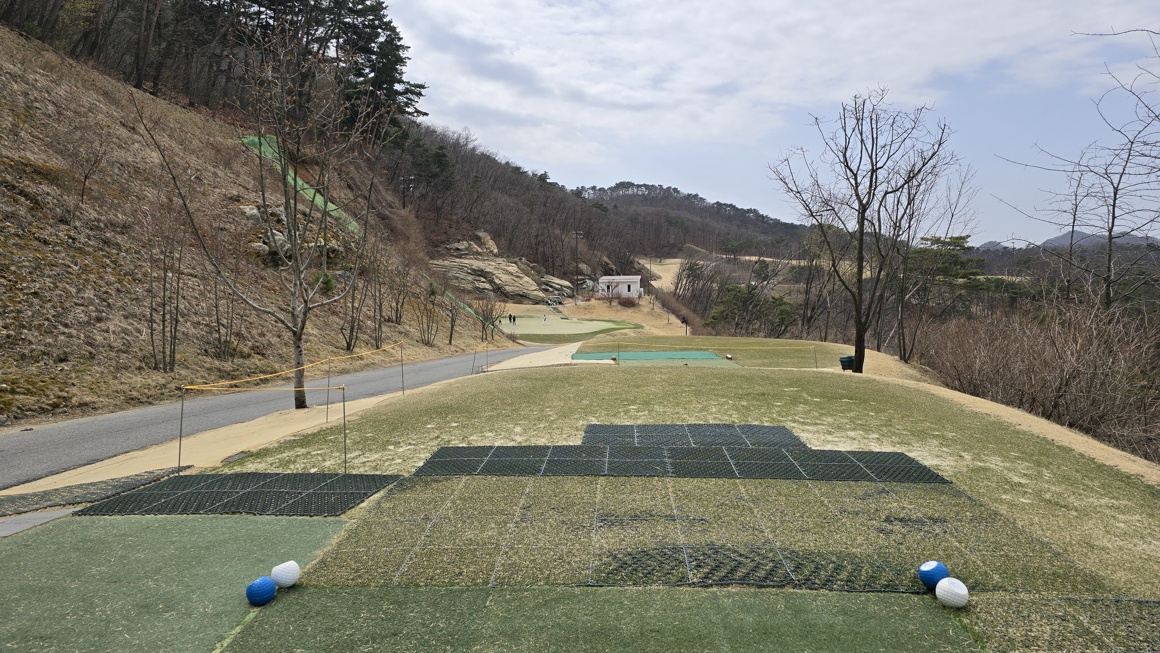 클럽하우스에서 바깥 경치를 살펴보니 산을 층층히 깎아서 계단식으로 만든 코스임이 한눈에 들어옵니다. 맨 아래서 1번홀 플레이하다가 위로 한칸씩 올라가고 다 올라간 후엔 반대편으로 층층히 내려오고 한눈에 보이는 코스의 구조가 왜 마운틴 코스라고 이름지었는지 알것 같으며 페어웨이가 좁고 낙차가 큰 이유도 저절로 깨달아지게 됩니다.