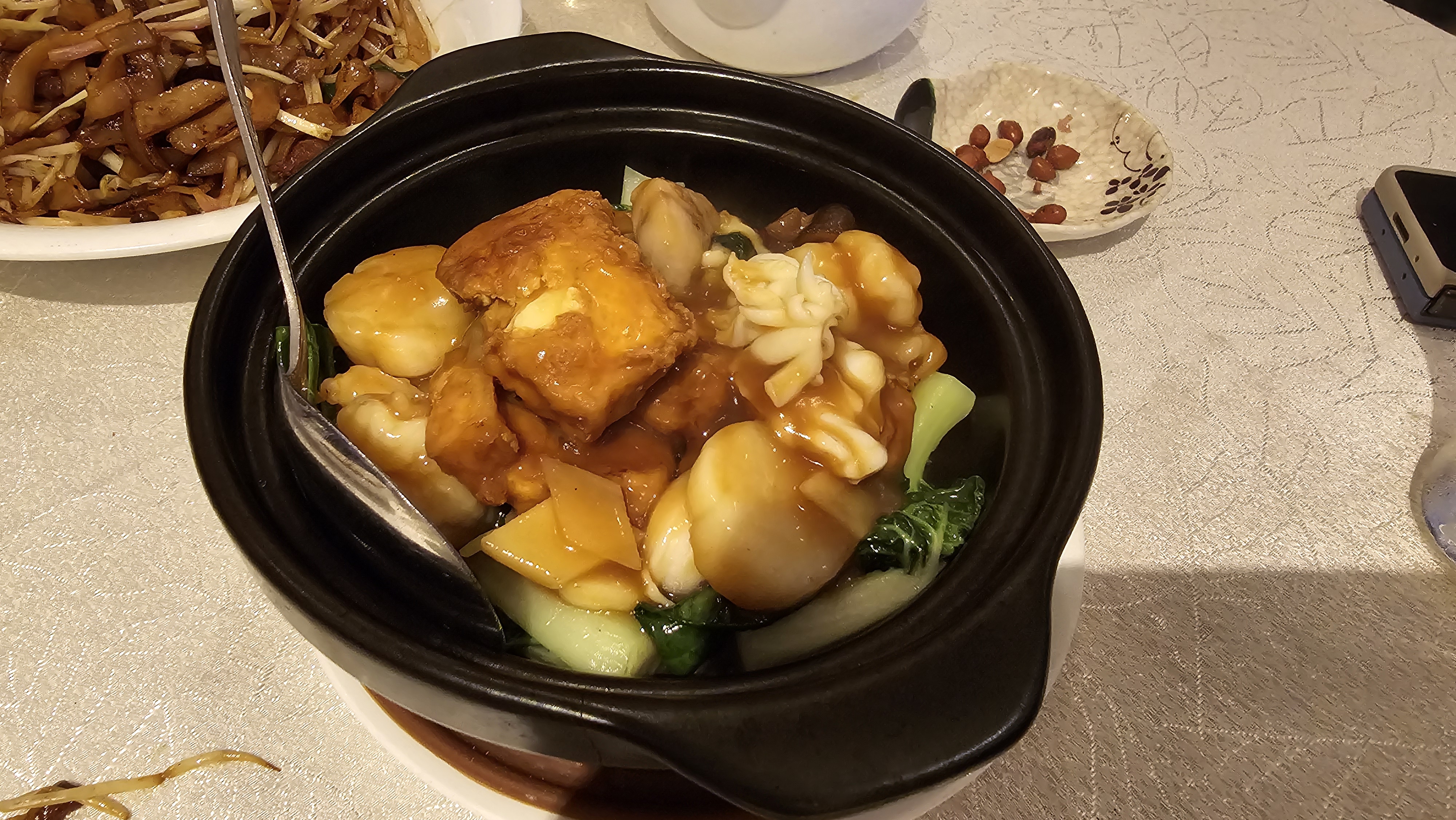 요리를 먹는동안 새로운 요리가 계속 추가되며 즐거운 식사자리가 계속됩니다. 모듬해산물볶음이 나오고 비주얼을 살펴보니 새우와 조개관자, 오징어 등 여러가지 해산물에 청경채와 건두부를 넣고 특제 소스로 볶아내여 뜩배기에 담아나왔습니다. 맛을보니 한국에서 많이 맛을 보던 팔보채와 비슷한 스타일이지만 역시 중국양념맛이 더욱 강한 것을 느끼게 됩니다.