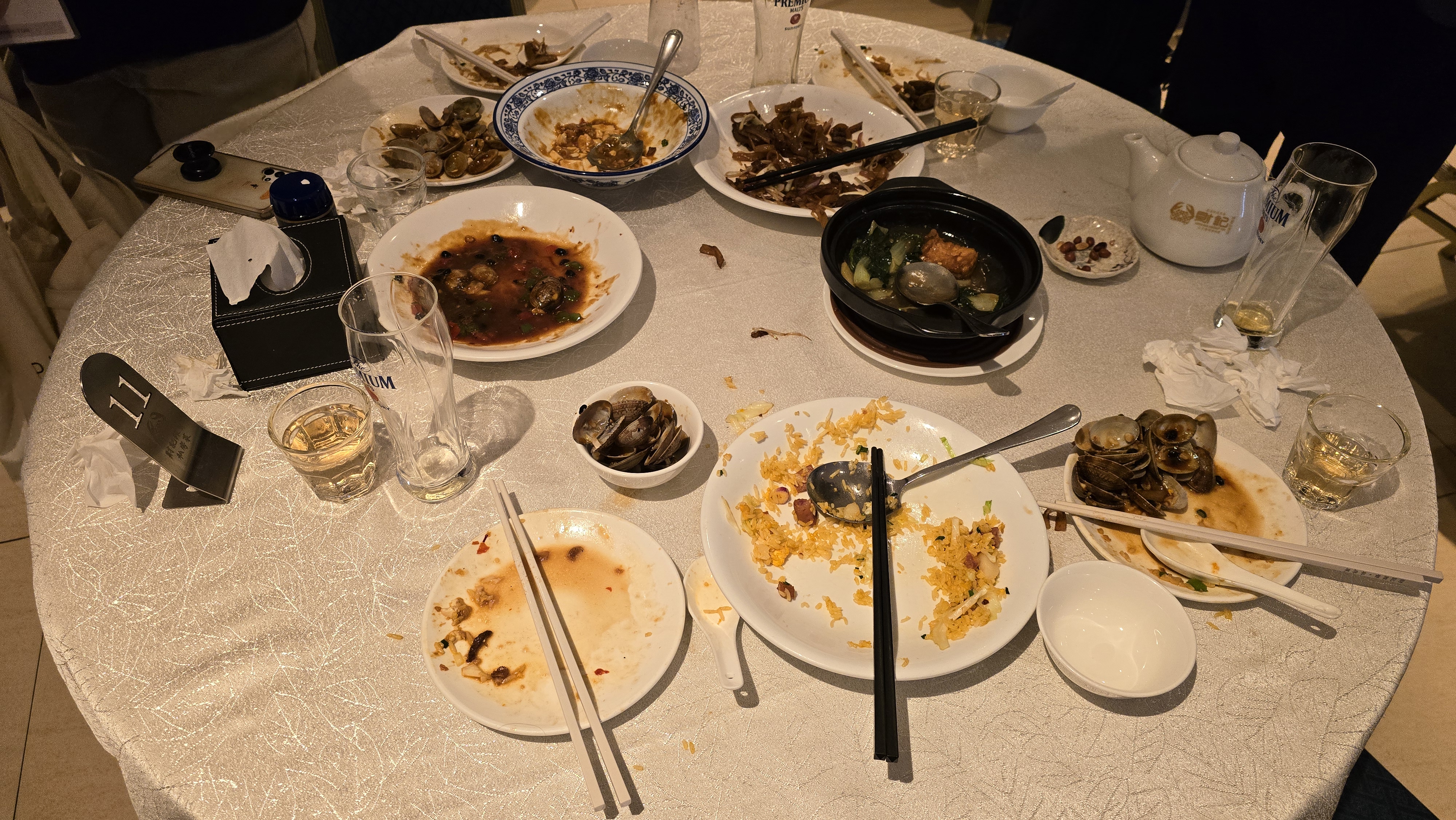 주문한 여러가지 음식을 개인접시에 덜어가며 서로 맛평가를 하고 따뜻한 차도 즐기고 매운맛이 강하면 시원한 맥주도 곁들이며 즐거운 식사자리를 가지니 어느새 시간이 늦고 모든 음식을 비워버렸습니다.