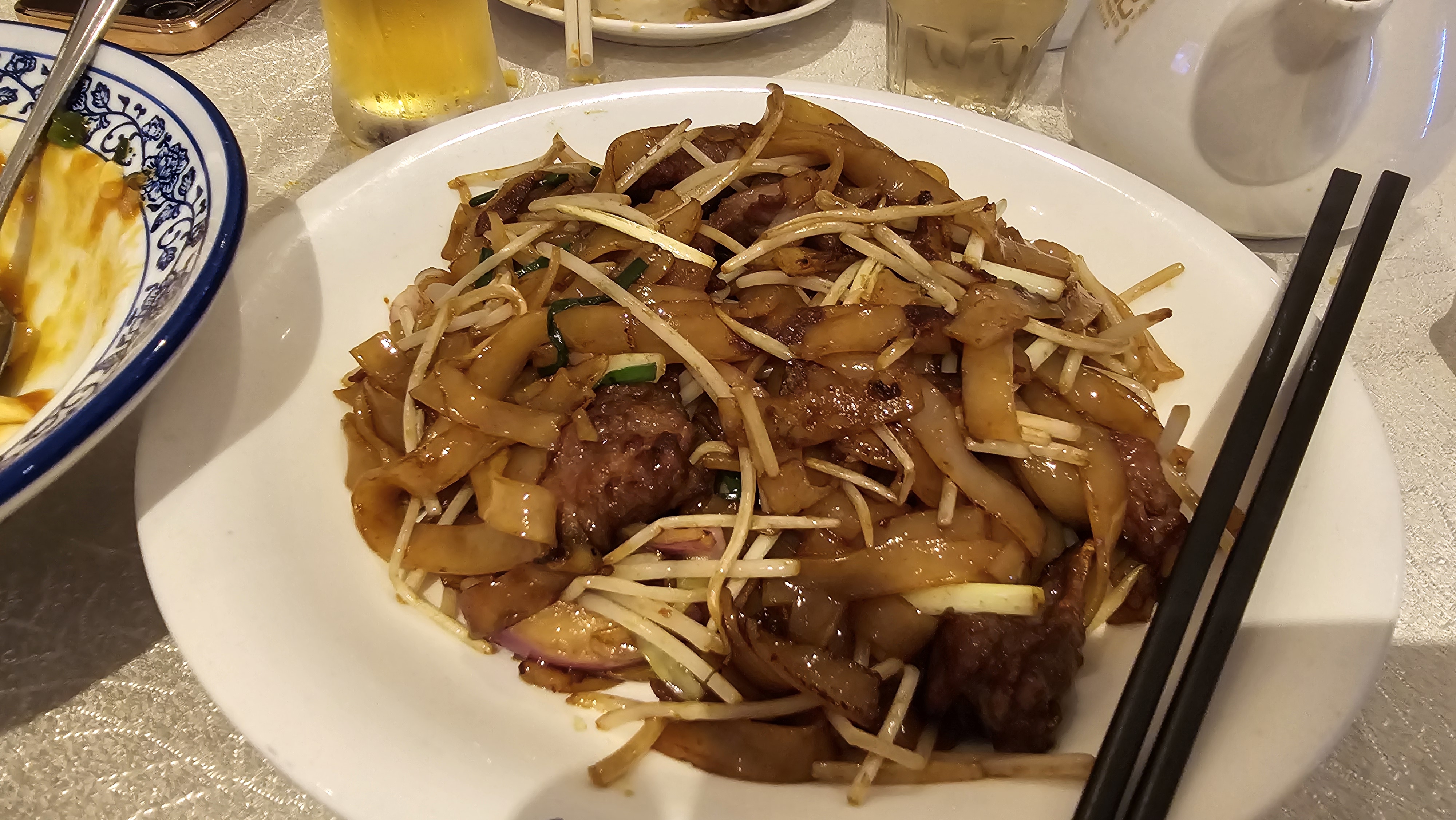 밥을 맛보았으니 다음은 면을 맛볼차례 뒤를 이어 소고기 볶음면 (Beef Chow Fun)이 나왔습니다. 넓은 쌀국수면을 소고기와 함께 볶고 숙주와 야채를 섞어 내온 스타일의 요리로 태국의 팟타이와 비슷하게 생각할 수 있지만 좀더 진한맛의 중국스타일 소스로 마무리한 차우펀입니다. 맛은 역시 팟타이에 비해 진한 맛이 일품이며 양념맛을 좋아하는 사람이라면 무척 좋아할 스타일의 요리라고 할 수 있습니다.