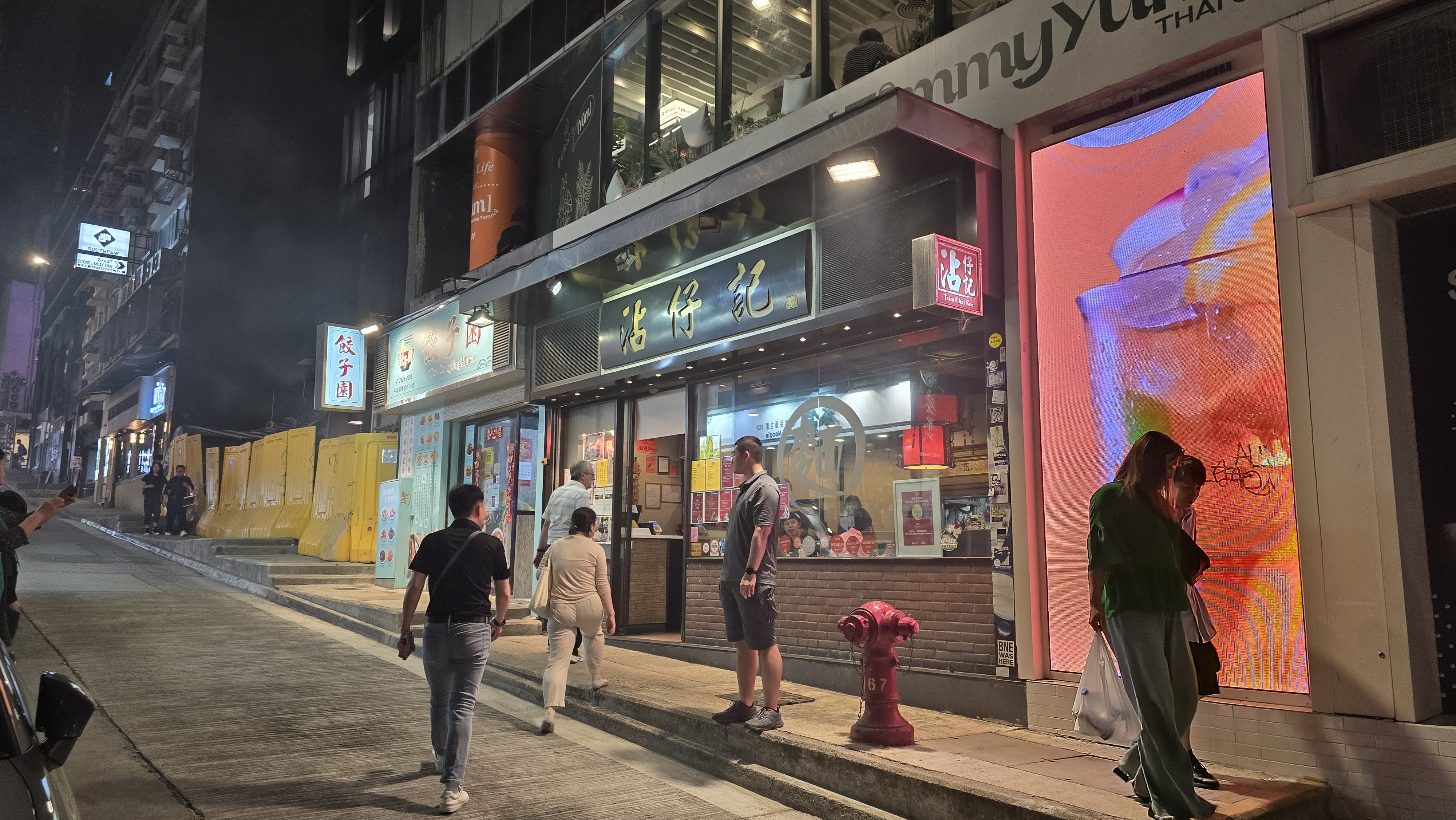 센트럴부근에서 저녁으로 무엇을 먹을까 생각하다 다양한 고명이 올라간 국수한그릇이 땡겨 주변 가장 유명한 국수맛집인 침차이키 (沾仔记, Tsim Chai Kee)에 가보기로 합니다. 늦은 저녁인데도 가게안밖은 벌써 사람들로 북적이는 모습이 인기를 말해주고 있는 모습입니다.