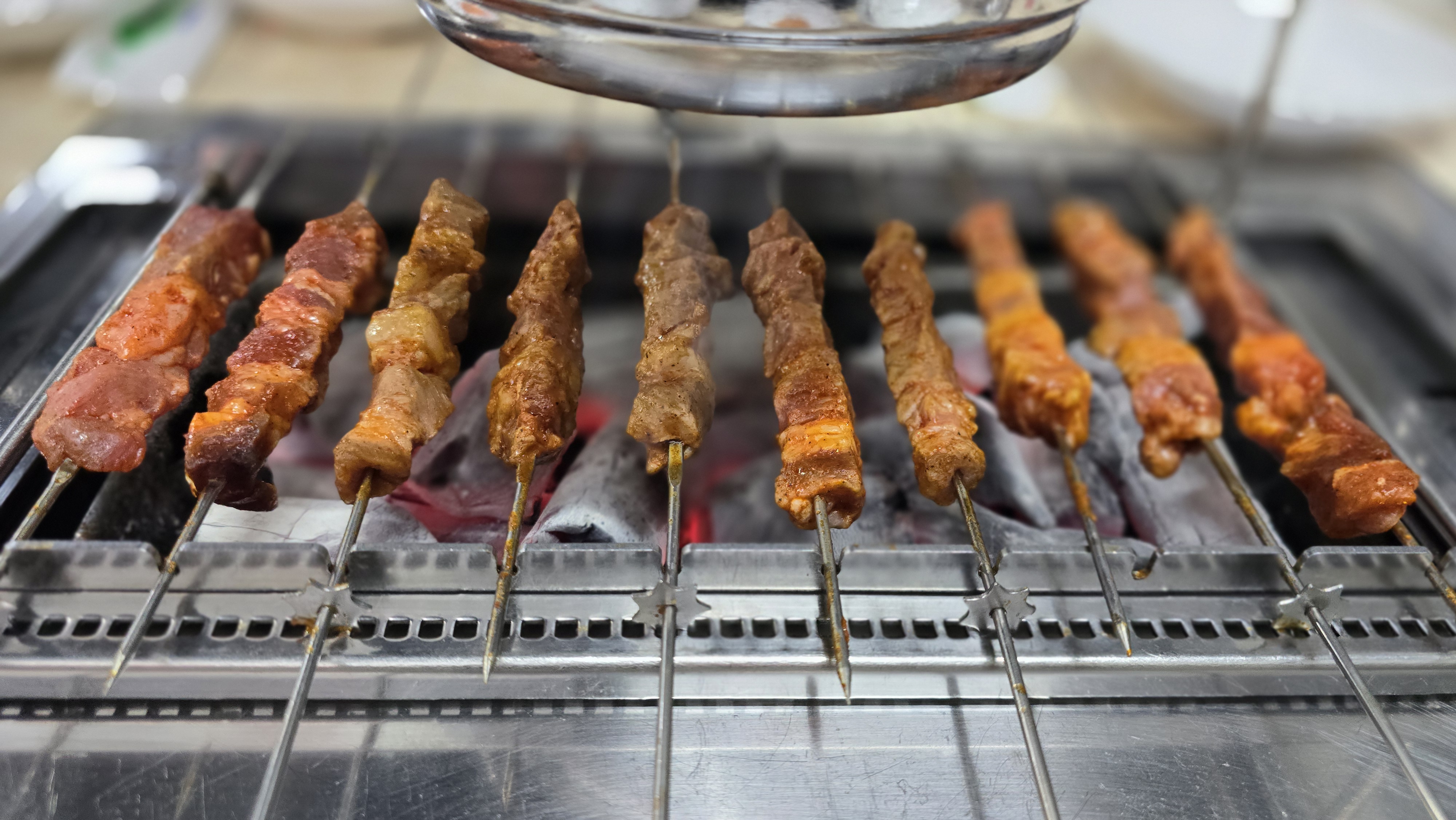 숯불에 양꼬치를 돌려서 구우니 구울수록 빛깔이 더욱 살아나고 향기로운 소스탄내가 올라오며 식욕을 자극하는게 느껴지게 됩니다. 평소 양념되지 않은 일반 양꼬치를 즐겨먹는데 명봉반점은 가장 기본도 양념이 발라져 있으니 상당히 양념에 자신이 있나보나는 생각으로 어떠한 맛을 낼지 참으로 기대가 되고 있습니다.