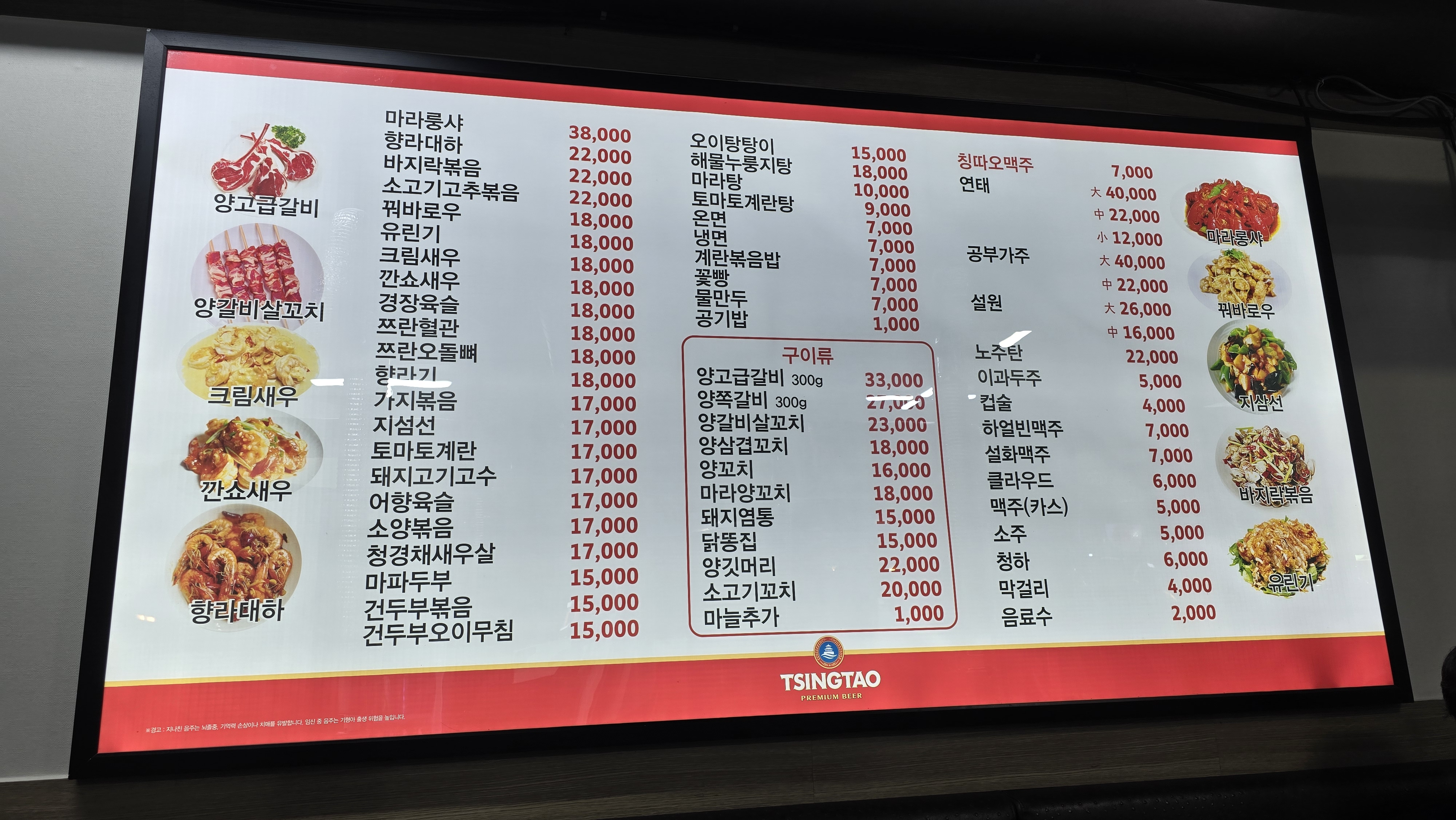 분위기 파악도 끝나고 메뉴판을 살펴보니 메뉴가 상당히 많은 것을 느끼게 됩니다. 일반 양꼬치집이라기 보다 반점이라는 가게명칭이 더 어울릴 정도로 다양한 중식메뉴를 보여주고 있어 선택을 하는 재미가 있다는 걸 느끼게 됩니다.