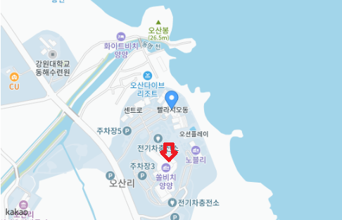 카카오맵으로 살펴보면 쏠비치양양 셰프스키친의 위치는 벨라지오동에 위치한 것으로 핀이 나오지만 좀더 자세하게 위치를 설명하면 호텔동 지하 창가쪽으로 표시할 수 있으며 펜션동과는 지하로 연결되어 있기 때문에 지상으로 이동할 필요없이 펜션동에서도 지하를 통하여 이동할 수가 있는 구조입니다.