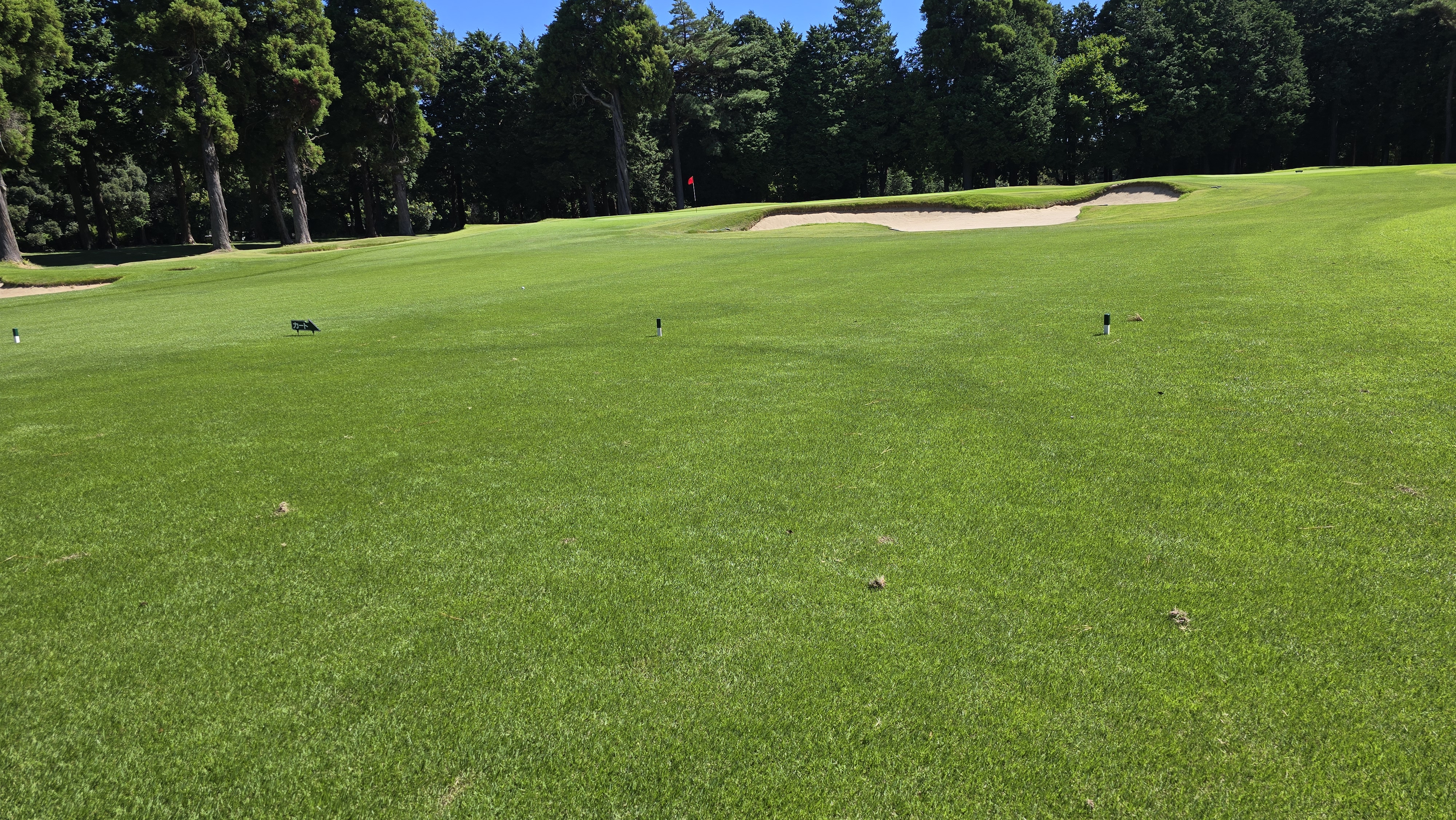 티샷을 마치고 페어웨이의 상태를 자세히 살펴보고 체크해봅니다. 잔디가 완벽히 디봇하나없이 매끄러운것은 아니지만 충분히 고르다고 느껴지고 왠만한 국내 골프장 보다 낫다고 여겨지는 컨디션을 보여주고 있습니다. 역시 사람들이 많이 않은 일본골프장은 관리가 잘되어 있는것이 느껴지는 부분입니다.