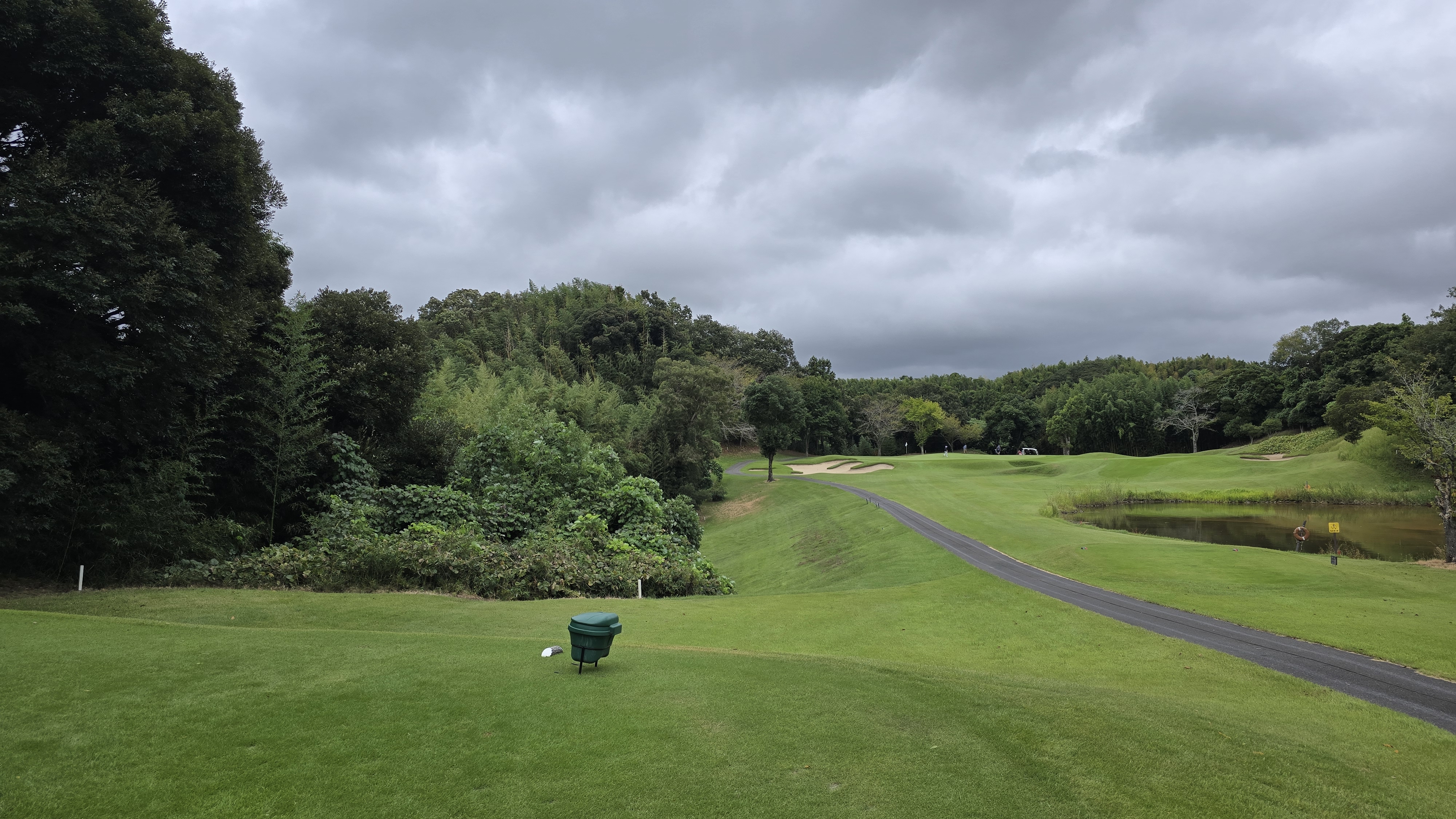 전반전을 돌면서 티샷구역 어느곳을 봐도 평범하게 구성해놓은 곳이 찾아보기 힘들정도로 나무가 앞에 가려 시야를 차단한다든지 워터해저드가 바로 앞에 있어 심리적 압박감을 주는등 여러가지로 도전을 불러일으키는 구조로 멘탈을 가다듬는것이 중요하다고 할 수 있는 코스구성입니다.