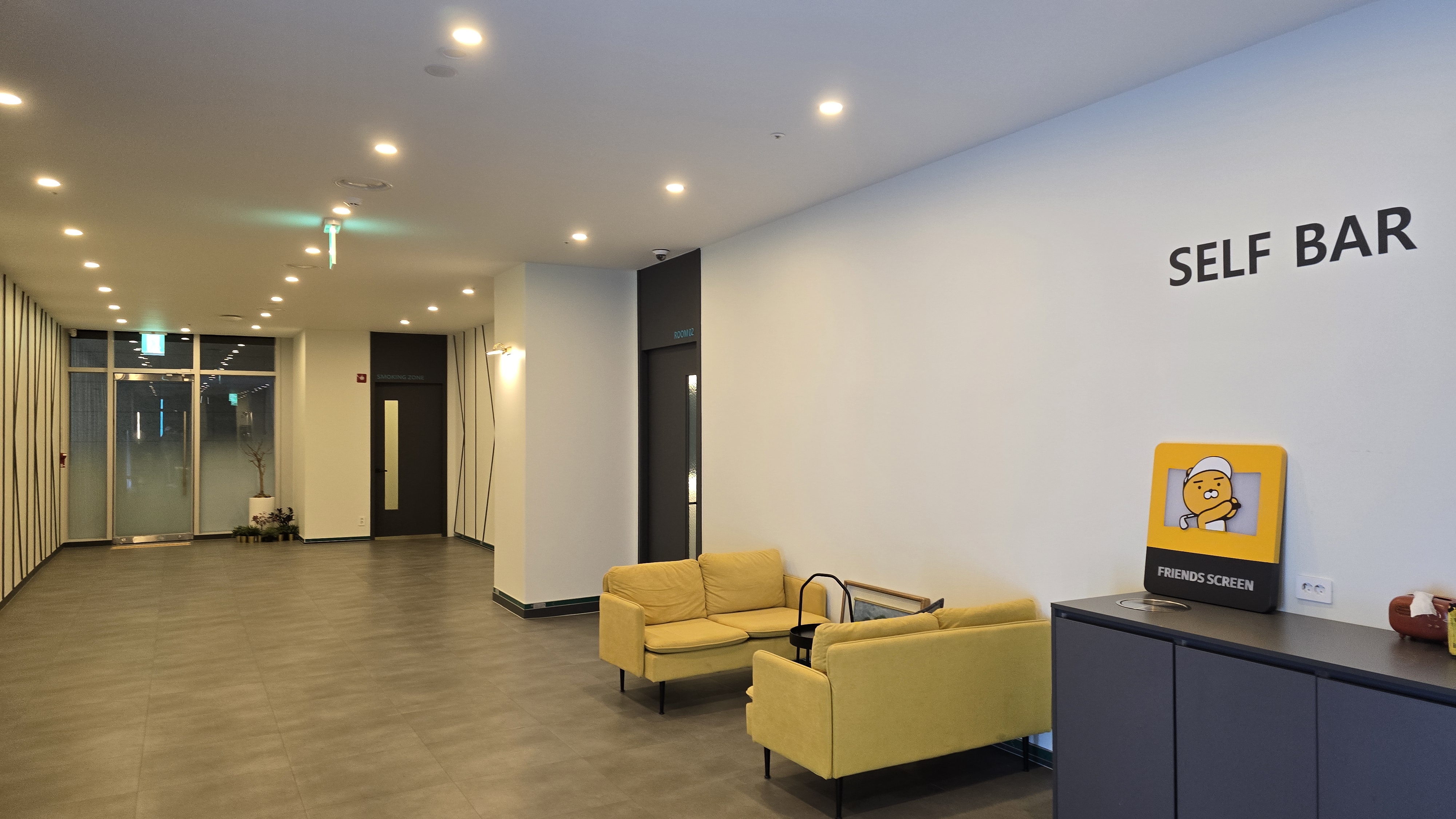 넓은 실내는 룸을 10개 이상 보유하고 있어 꽤나 규모가 큰 것을 체감하게되며 셀프바도 마련되어 있어 물이나 음료를 마음껏 먹을수있도록 꾸며져 있는게 좋아보입니다.
