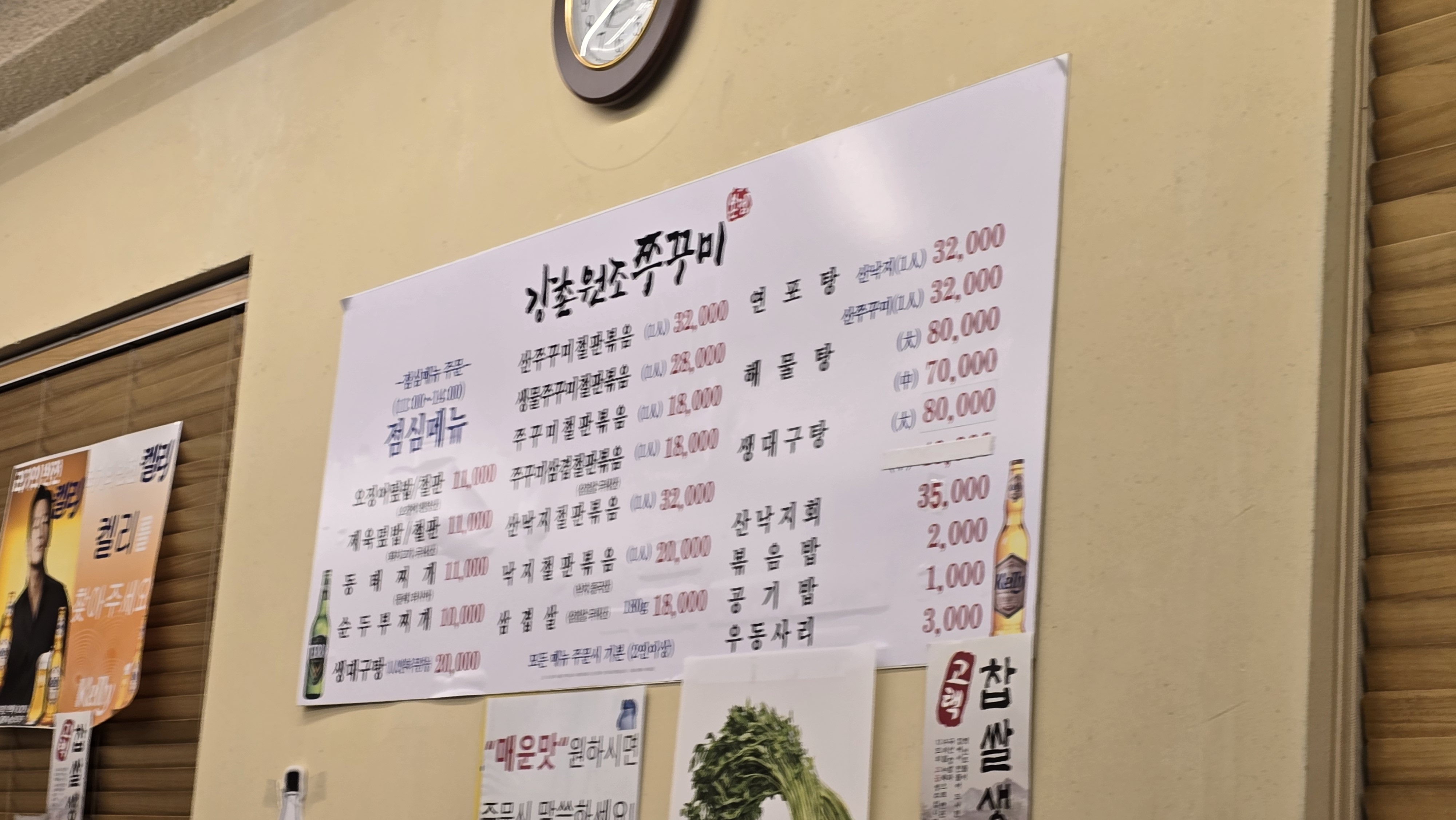 자리를 잡고 메뉴는 정해졌지만 메뉴판에는 무엇이 있는지 천천히 살펴봅니다. 쭈꾸미와 낙지를 주재료로 철판볶음, 해물탕, 연포탕 등에 메뉴가 있으니 쭈꾸미 샤브샤브는 보이지 않습니다. 하지만 걱정을 할 필요없이 쭈꾸미 전문점이기 때문에 쭈꾸미 샤브샤브를 주문하면 알아서 처리를 해주십니다.