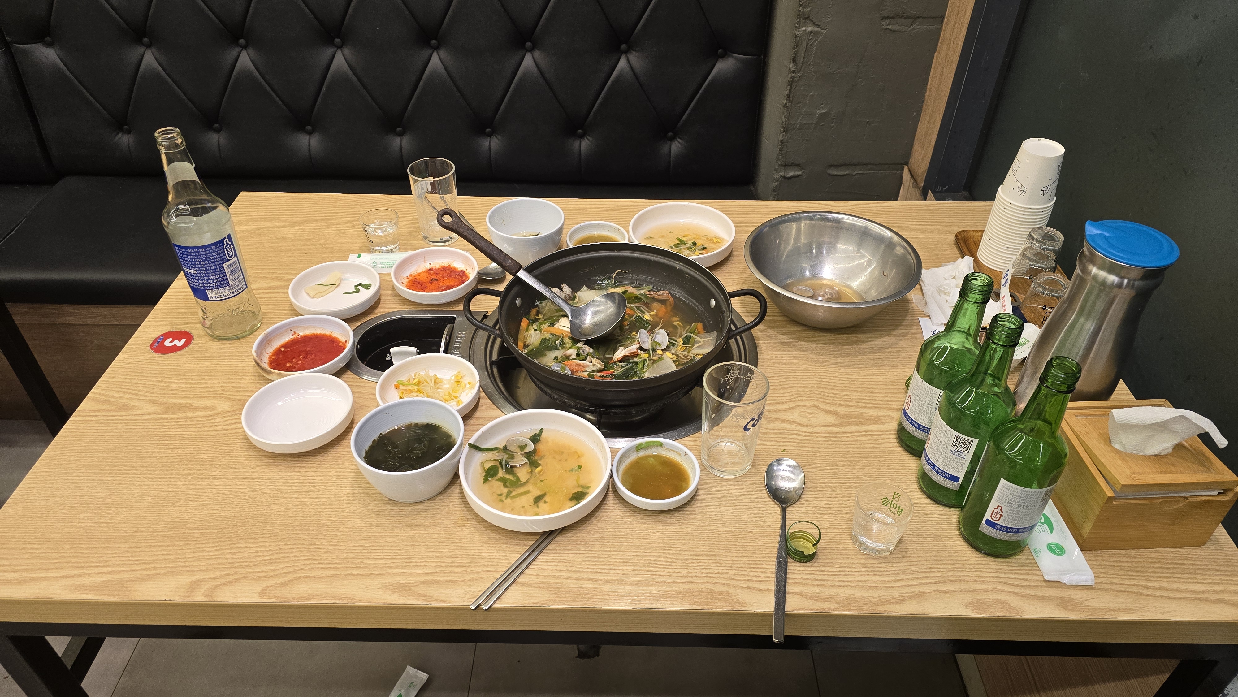 쭈꾸미 샤브샤브가 너무나 맛있기 때문에 김치와 반찬을 곁들여가며 끝도 없이 흡입하고 기분이 좋으니 술도 술술 들어가고 매우 즐거운 저녁식사 시간을 가지게 되어서 기쁘고 포만감이 가득한 상태로 자리를 마무리 합니다.